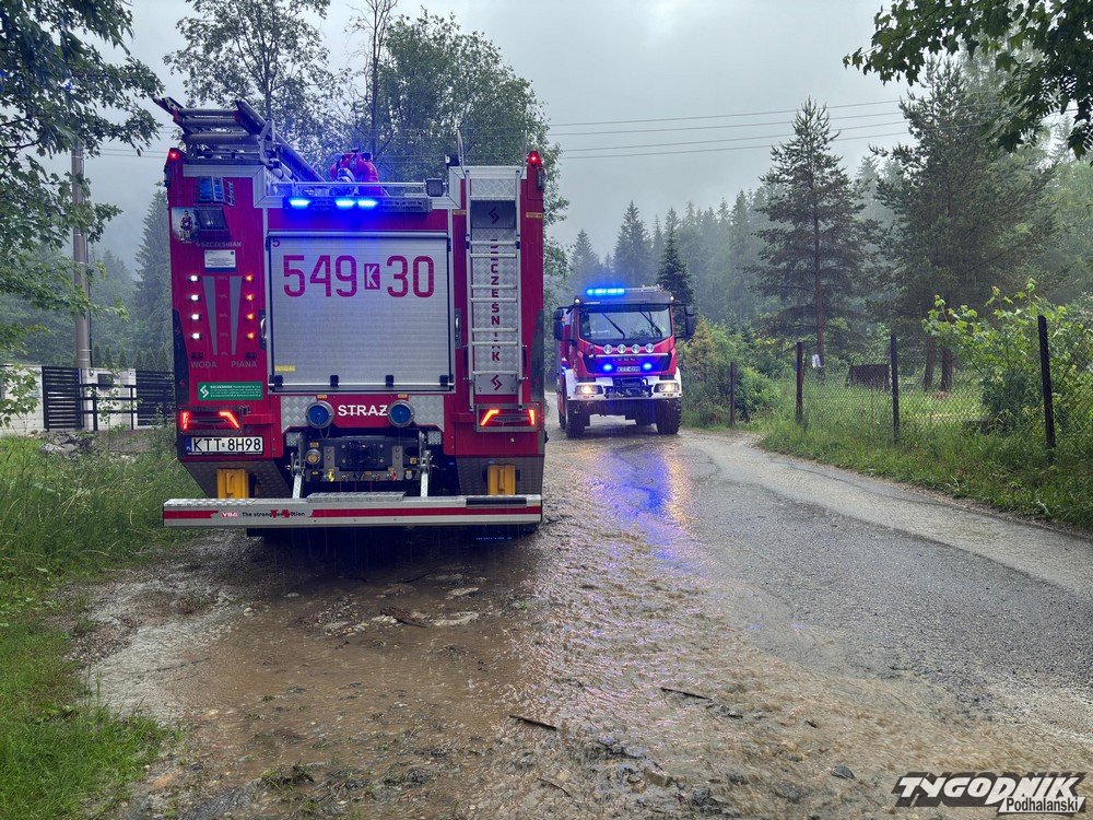 Nad powiatem tatrzańskim przechodzą burze i ulewne deszcze. Najmocniej padało w okolicach Kościeliska. Na ul. Małej Łąki, niedaleko granicy z Zakopanem, zalewa piwnice w tamtejszych domach. Na miejscu pracują już strażacy.