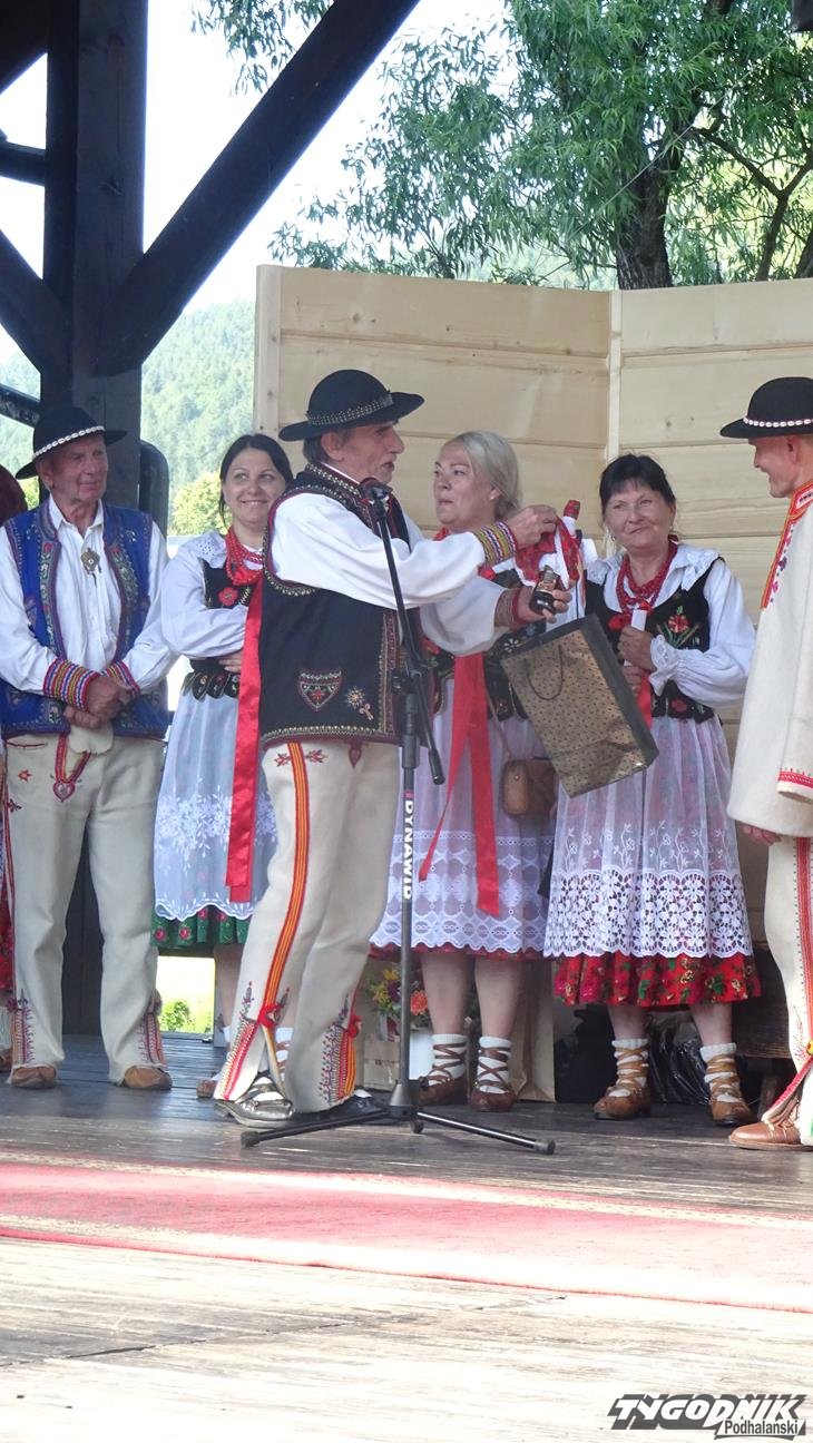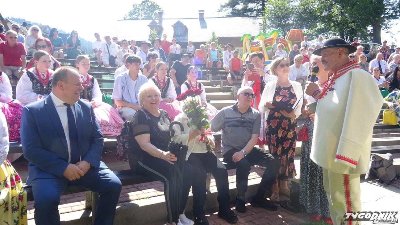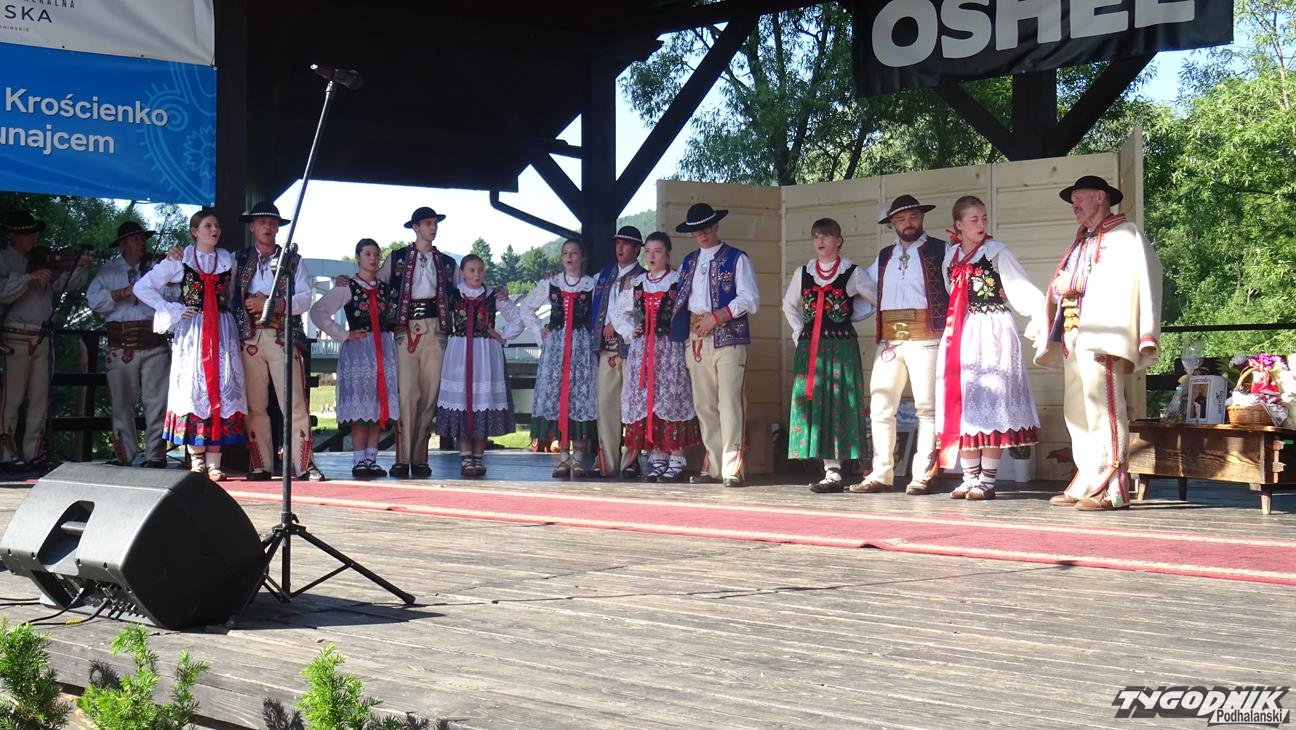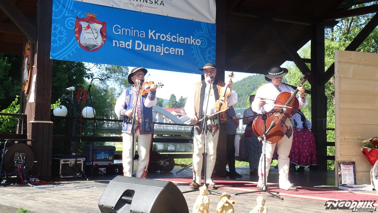 Po Mszy św. wszyscy uczestnicy przeszli w pochodzie do amfiteatru "Pod Wierzbą". To tam przyjaciele Jaśka Kubika składali mu życzenia, wręczali prezenty, listy gratulacyjne oraz grali i śpiewali dla jubilata. Na spotkanie dojechali goście z partnerskiego miasta Ożarowa. Okolicznościowy wiersz przygotowała pani Krystyna Aleksander. Swoje wiersze zaprezentowała też pani Bożena Soliwoda. Życzenia muzyczne składały kapele i zespoły. Z Kamionki Wielkiej przyjechała dziewczęca grupa śpiewacza zespołu regionalnego "Mystkowianie", prezentująca folklor ziemi sądeckiej. Orawę reprezentowało Stowarzyszenie i Zespół Regionalny "Orawskie Roztoki". - Przyjechaliśmy z zespołem do Krościenka, by wyrazić poprzez śpiew, muzykę i taniec szacunek dla szacownego jubilata za jego dotychczasową działalność - mówił Eugeniusz Karkoszka, kierownik orawskiej grupy. Na scenie - po dłużej przerwie - zaprezentował swój najnowszy repertuar zespół "Pieniny".