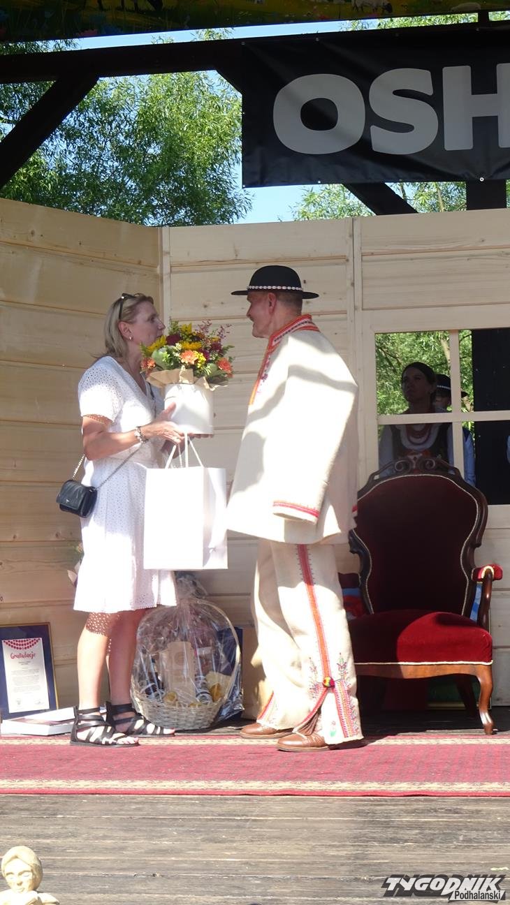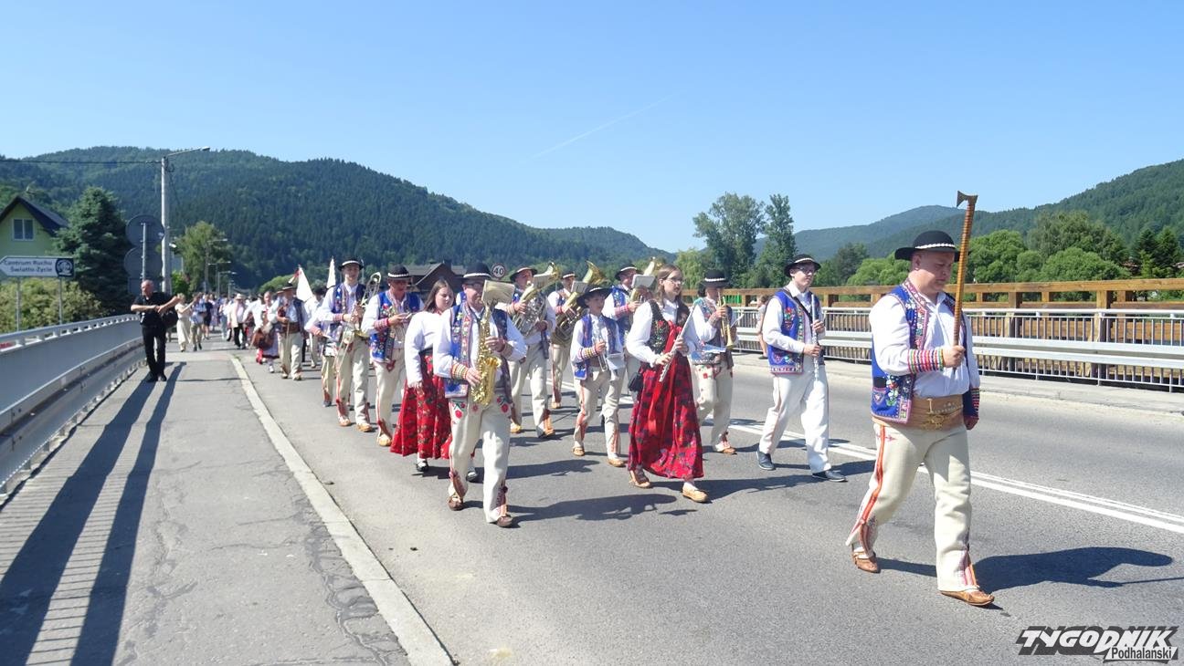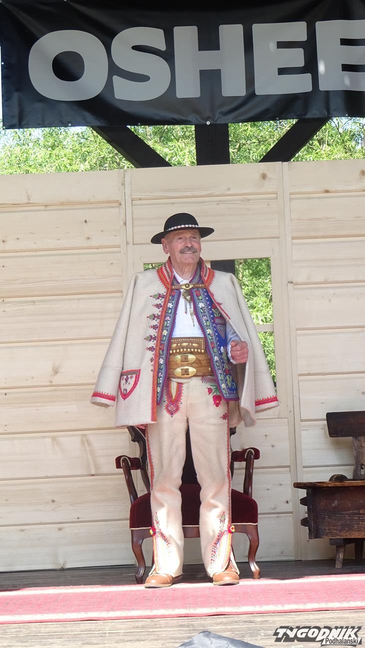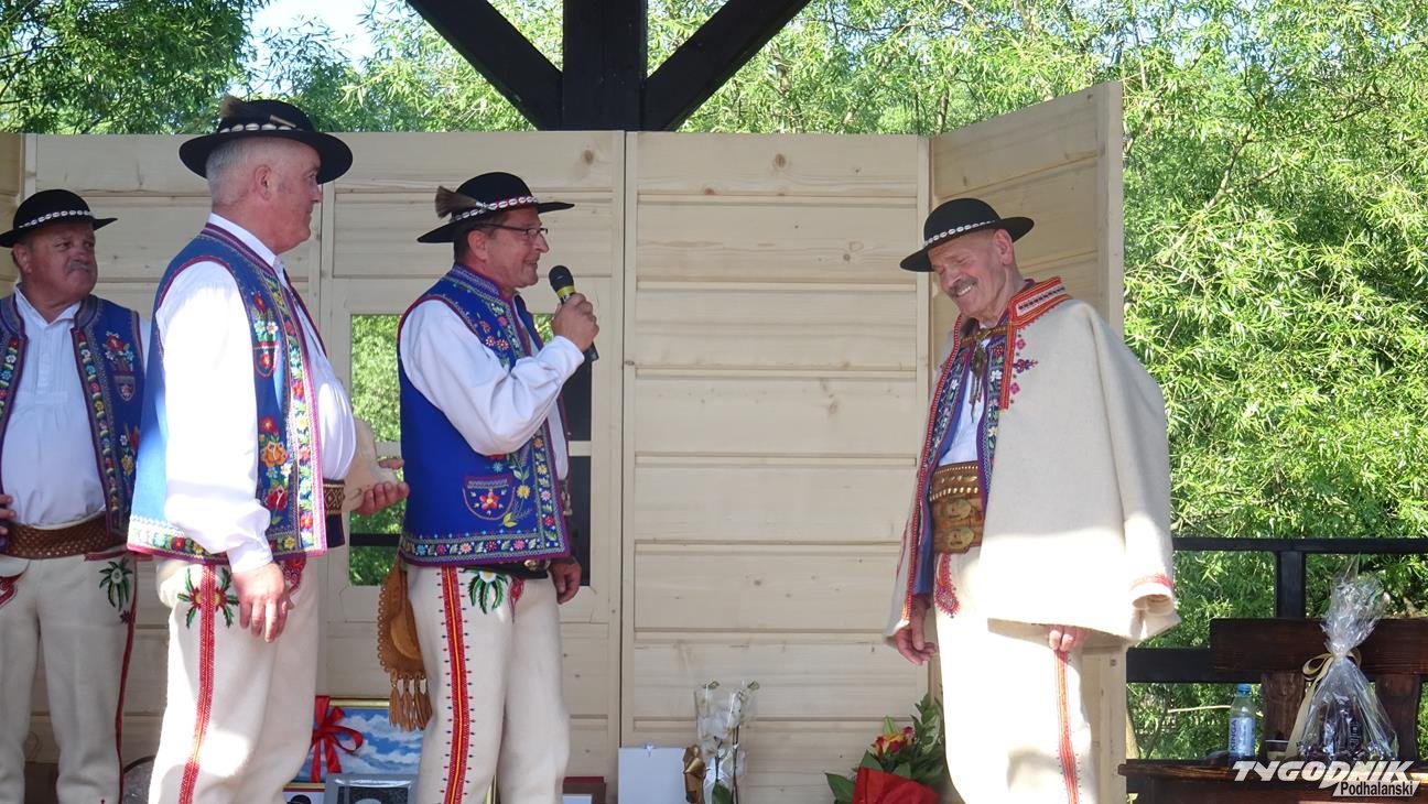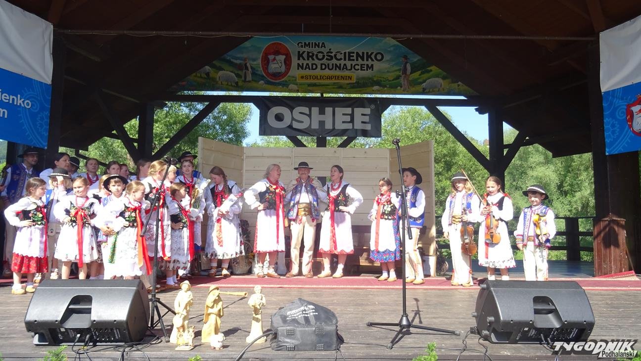 Po Mszy św. wszyscy uczestnicy przeszli w pochodzie do amfiteatru "Pod Wierzbą". To tam przyjaciele Jaśka Kubika składali mu życzenia, wręczali prezenty, listy gratulacyjne oraz grali i śpiewali dla jubilata. Na spotkanie dojechali goście z partnerskiego miasta Ożarowa. Okolicznościowy wiersz przygotowała pani Krystyna Aleksander. Swoje wiersze zaprezentowała też pani Bożena Soliwoda. Życzenia muzyczne składały kapele i zespoły. Z Kamionki Wielkiej przyjechała dziewczęca grupa śpiewacza zespołu regionalnego "Mystkowianie", prezentująca folklor ziemi sądeckiej. Orawę reprezentowało Stowarzyszenie i Zespół Regionalny "Orawskie Roztoki". - Przyjechaliśmy z zespołem do Krościenka, by wyrazić poprzez śpiew, muzykę i taniec szacunek dla szacownego jubilata za jego dotychczasową działalność - mówił Eugeniusz Karkoszka, kierownik orawskiej grupy. Na scenie - po dłużej przerwie - zaprezentował swój najnowszy repertuar zespół "Pieniny".