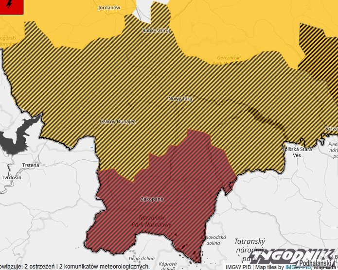 W powiecie tatrzańskim IMGW podniósł poziom zagrożenia burzowego do trzeciego stopnia