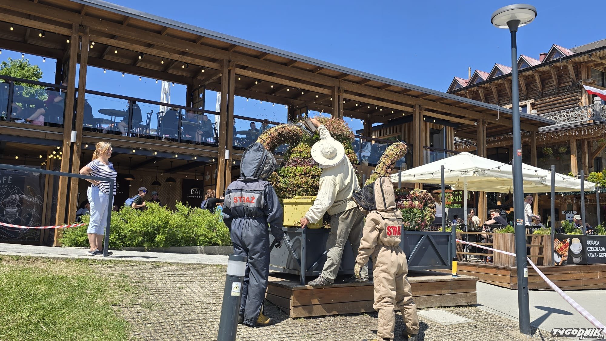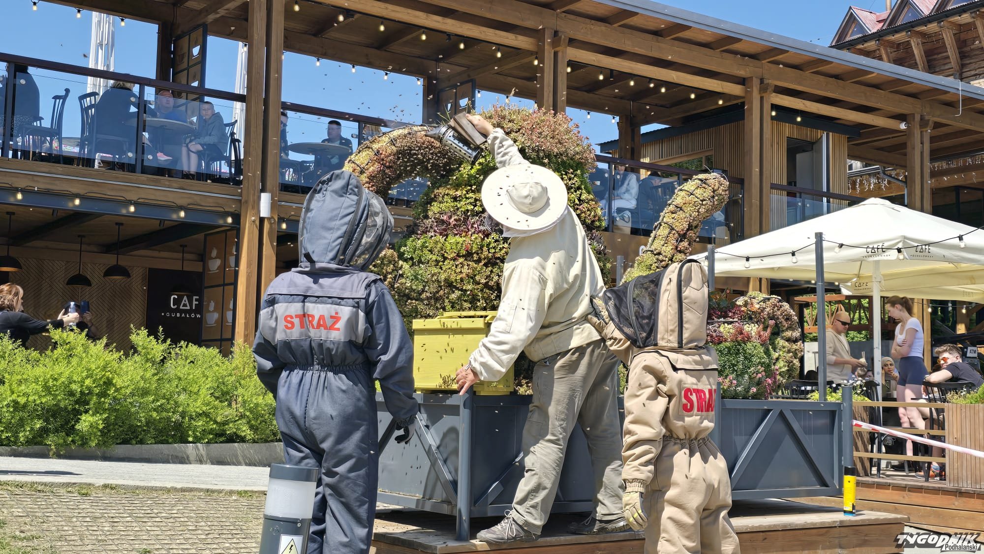 Na jednej z roślinnych dekoracji zadomowił się cały rój pszczół. Na miejsce wezwano strażaków.