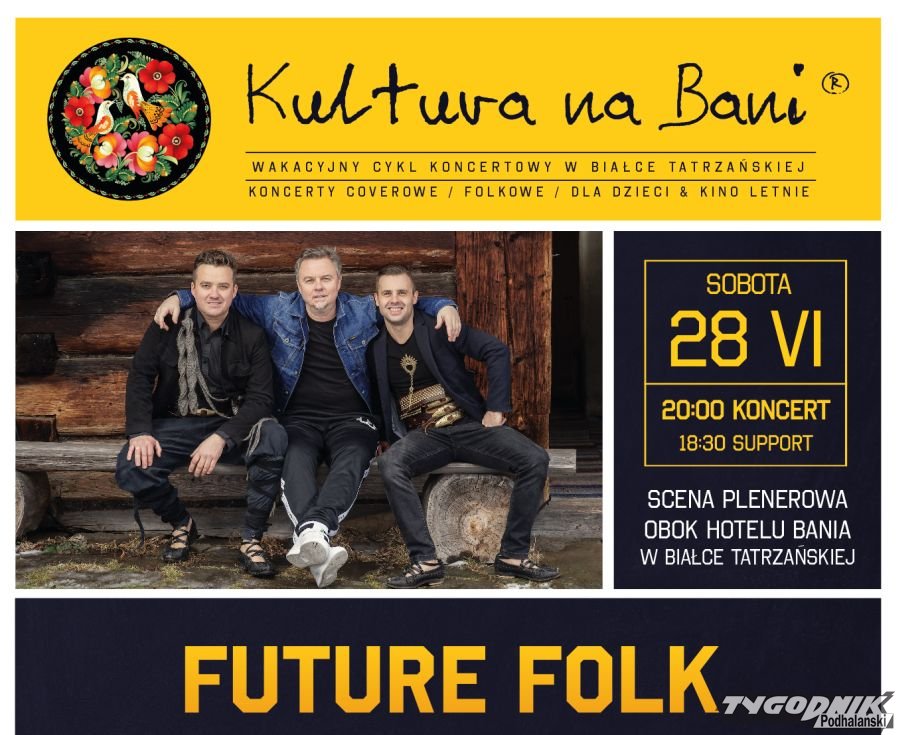 W soboty o 20 czeka Was muzyczne wydarzenie tygodnia, czyli koncerty takich wykonawców jak Future Folk, Piotr Szewczyk, NeoKlez, Staszek z gór, 2 Plus 1, Basia Giewont, Kapela Dusa, Cumbancheros oraz Reggaeside.