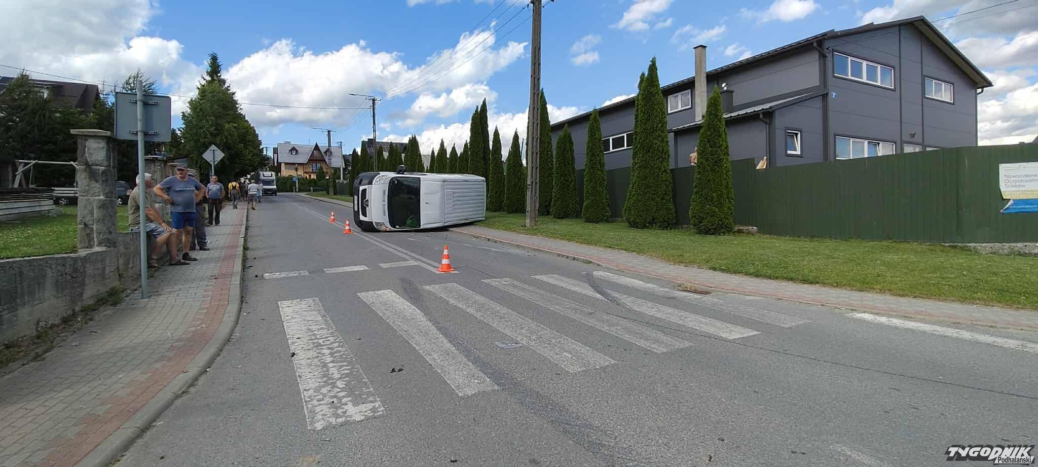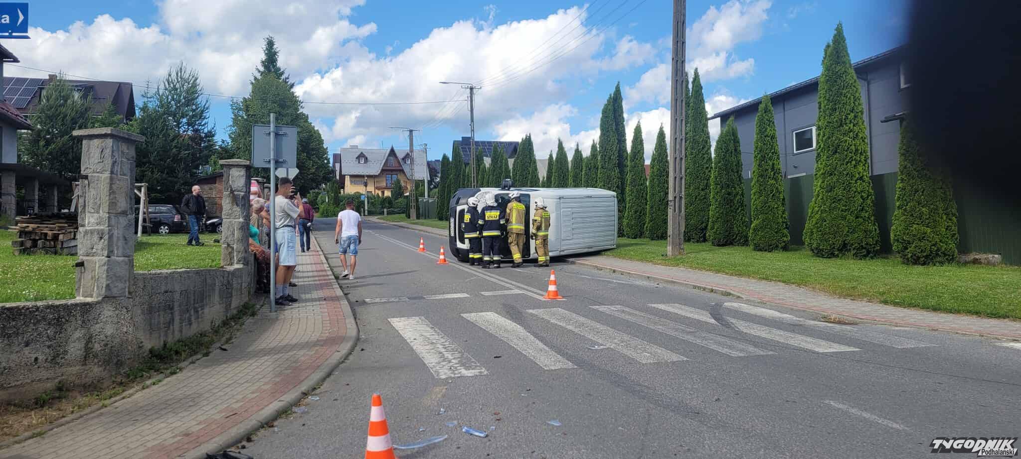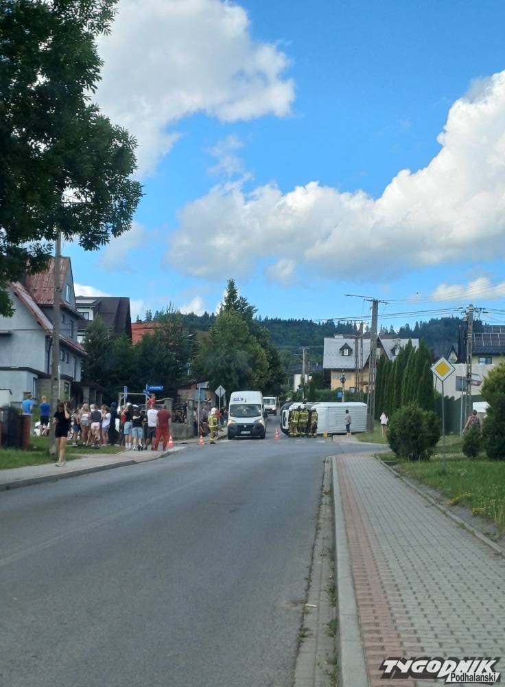Dostawczy bus przewrócił się na bok