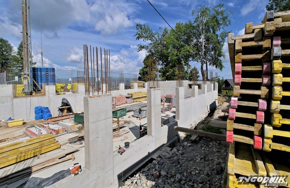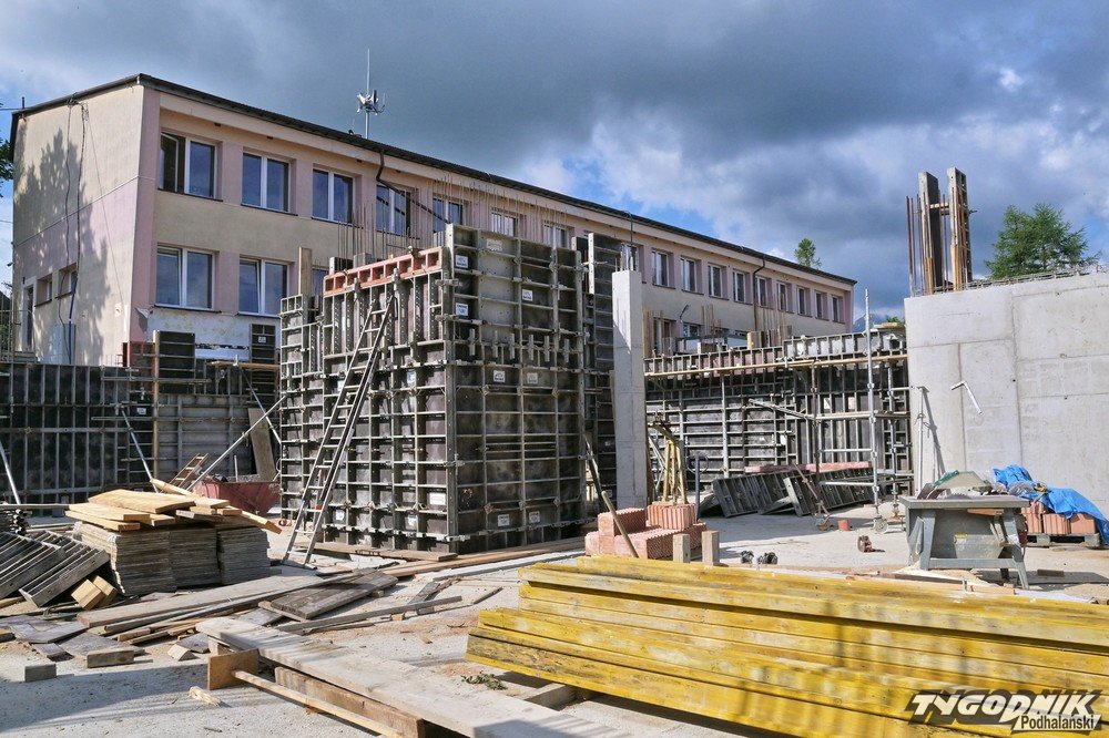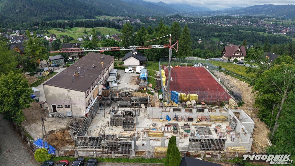 Budowa nowoczesnej sali gimnastycznej przy Szkole Podstawowej nr 7 na Cyrhli w Zakopanem nabiera tempa. Gotowe są już wszystkie ściany, trwają przygotowania do wykonania pierwszego stropu, a w konstrukcji wyłania się szyb windowy.