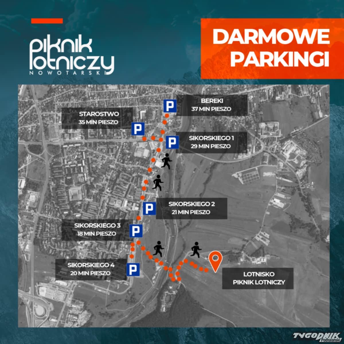 Osoby, które na piknik przyjadą samochodami mogą skorzystać z ogólnodostępnych i bezpłatnych parkingów przy ul. Sikorskiego i na os. Bereki.