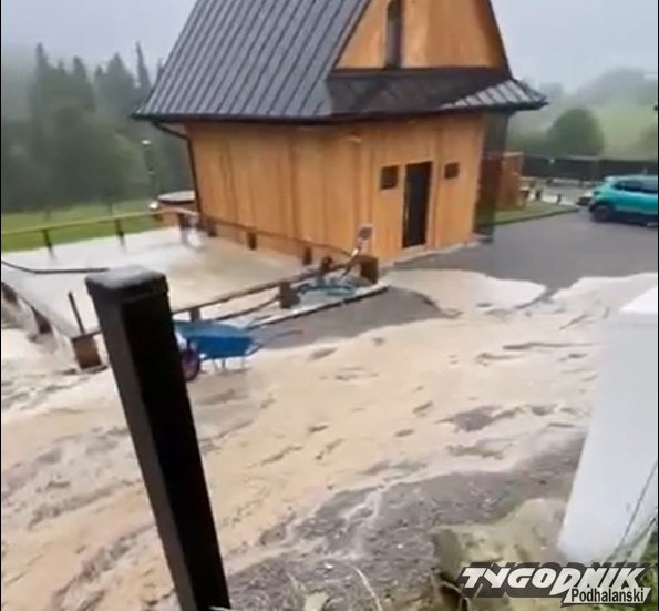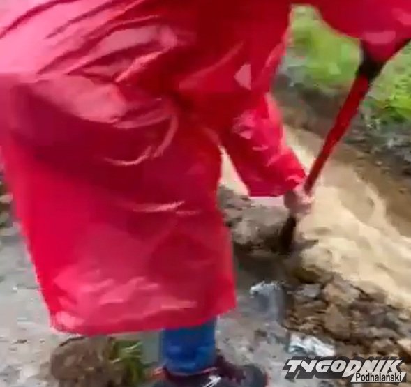 Powodziowe przepychanki w Czerwiennem (WIDEO)