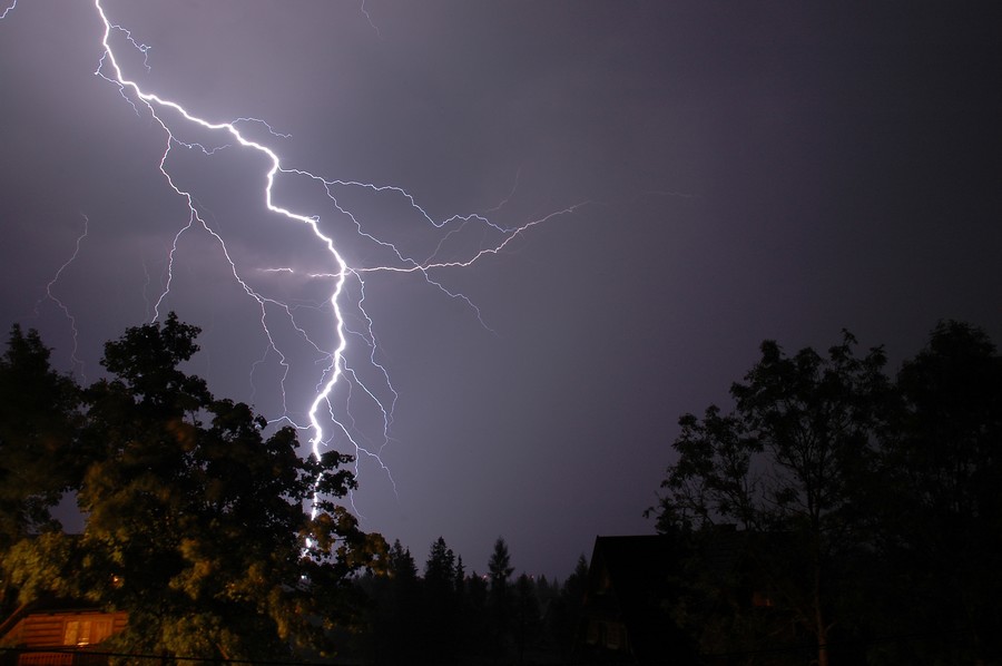 Nad Podhalem przechodzi front atmosferyczny. W wielu miejscach niebo rozświetlają błyskawice.