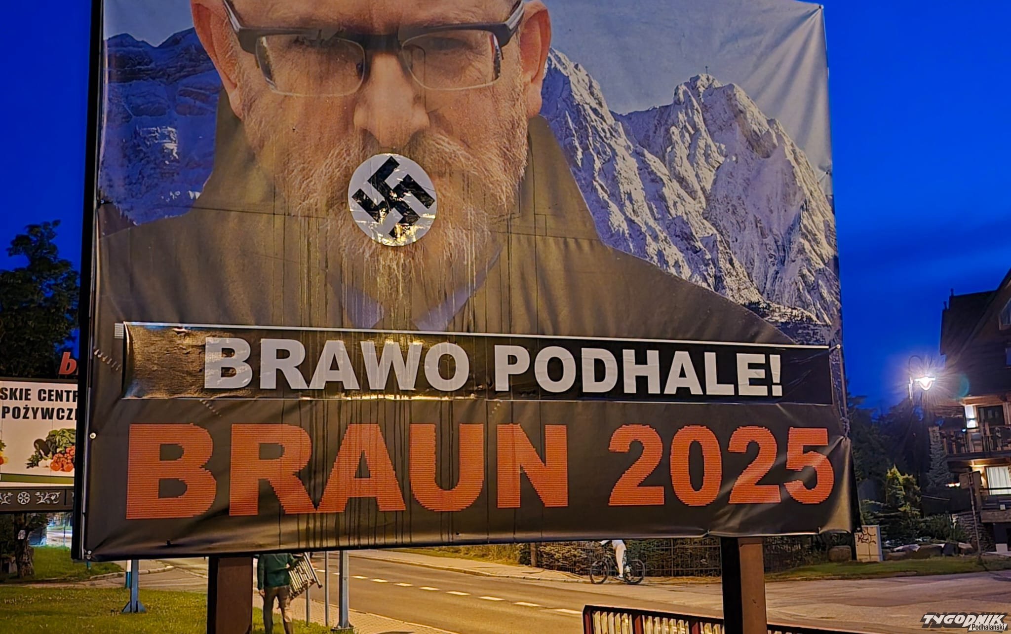 Ciekawe, co o tej swastyce w Skibówkach powiedzieliby Marusarz, Krzeptowski, Uznański i inni kurierzy tatrzańscy? "Podhale dziękuje"?! Kto powiesił ten naziolski baner i czy jeszcze tam wisi?