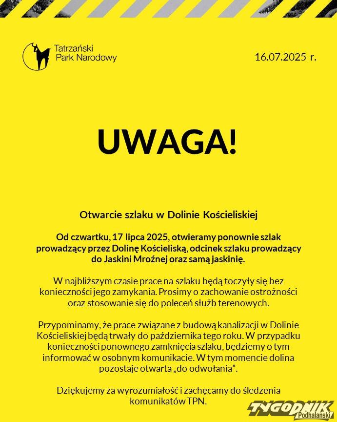 Otwarty szlak w Dolinie Kościeliskiej