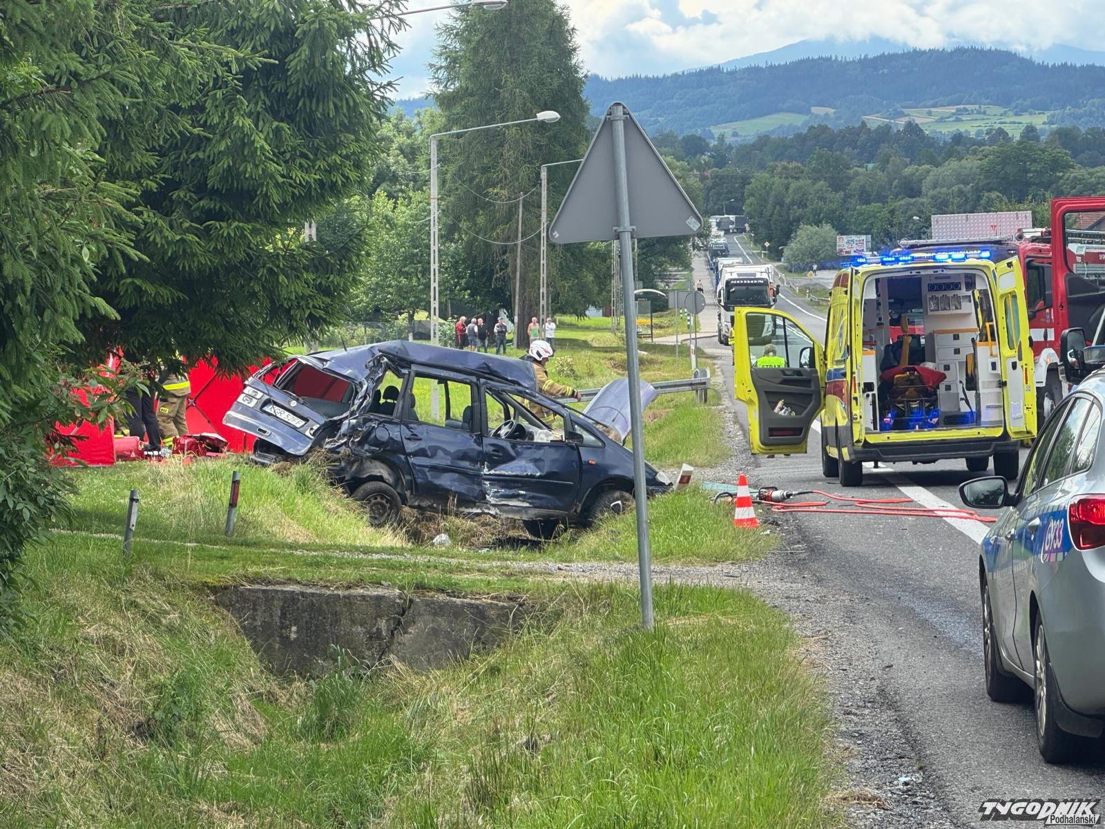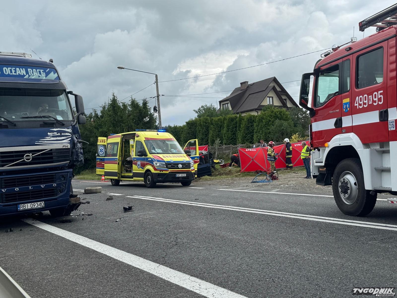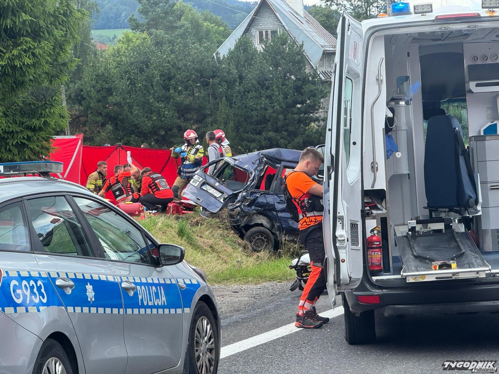 Policja ustaliła przebieg dzisiejszego poważnego wypadku w Spytkowicach. Dwie osoby ucierpiały, dziecko walczy ożycie.