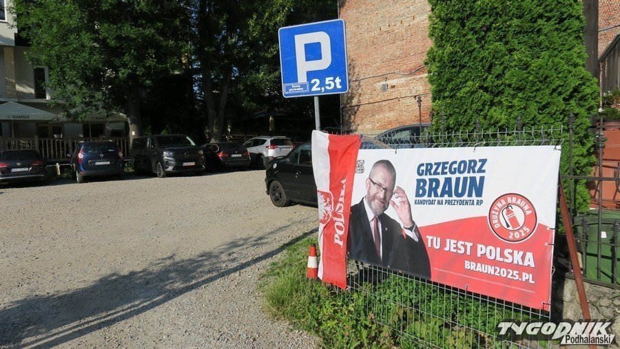 Kolejny wielki baner z Braunem postawiony został na Skibówkach. Grzegorz Braun dziękuje na nim mieszkańcom Podhala. Po jego skandalicznych wypowiedziach na temat komór gazowych ktoś na jego usta przykleił swastykę.
