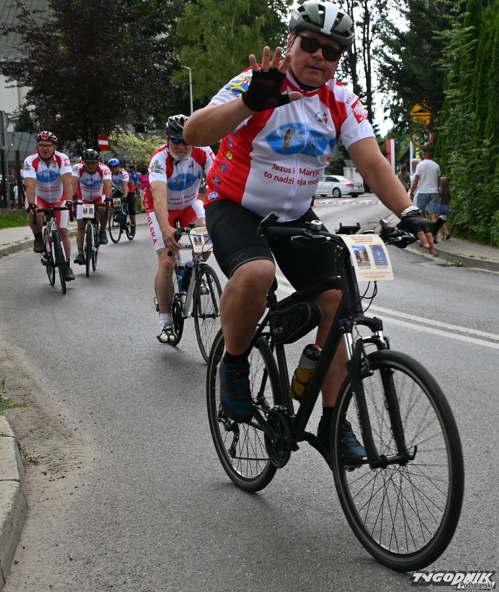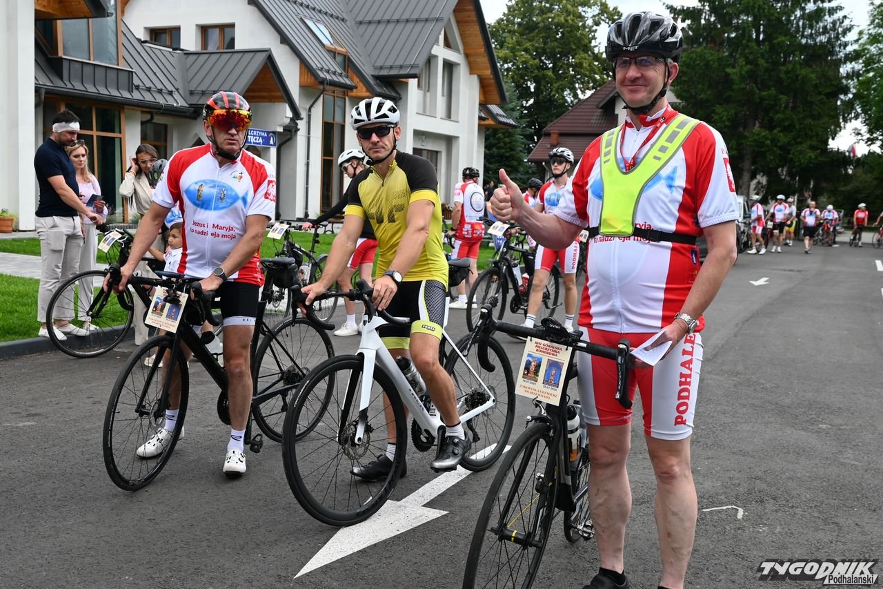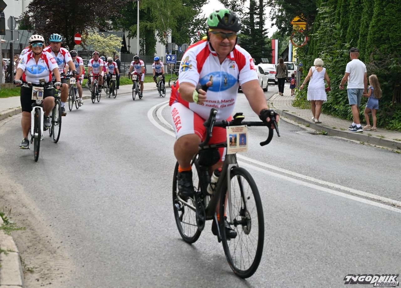 Wśród pątników byli górale z Jabłonki - pan Bogusław i pan Piotr. - Boguś jedzie pierwszy raz, w końcu go namówiłem, ja wyruszam piąty raz z kolei, mam zatem taki mały jubileusz. Jesteśmy przygotowani kondycyjnie, bo robiliśmy sobie wyprawy rowerowe. Liczymy jednak na dobrą pogodę, byle nie padało, bo człowiek cały mokry, woda leje się do butów. Naprawdę trudno się wtedy jedzie. Choć dla mnie te pielgrzymki, przyznam szczerze, to trochę forma uzależnienia od dobrych ludzi, pozytywnych rozmyślań, świetnej atmosfery - zauważył góral z Jabłonki.