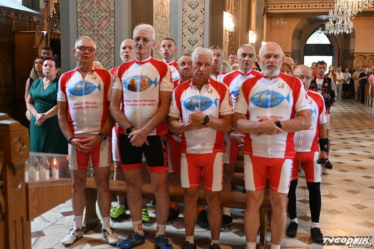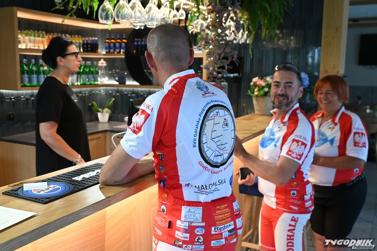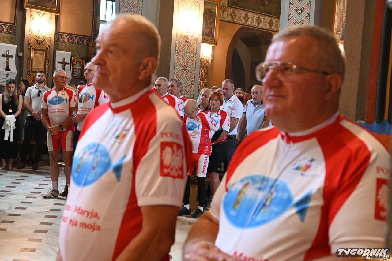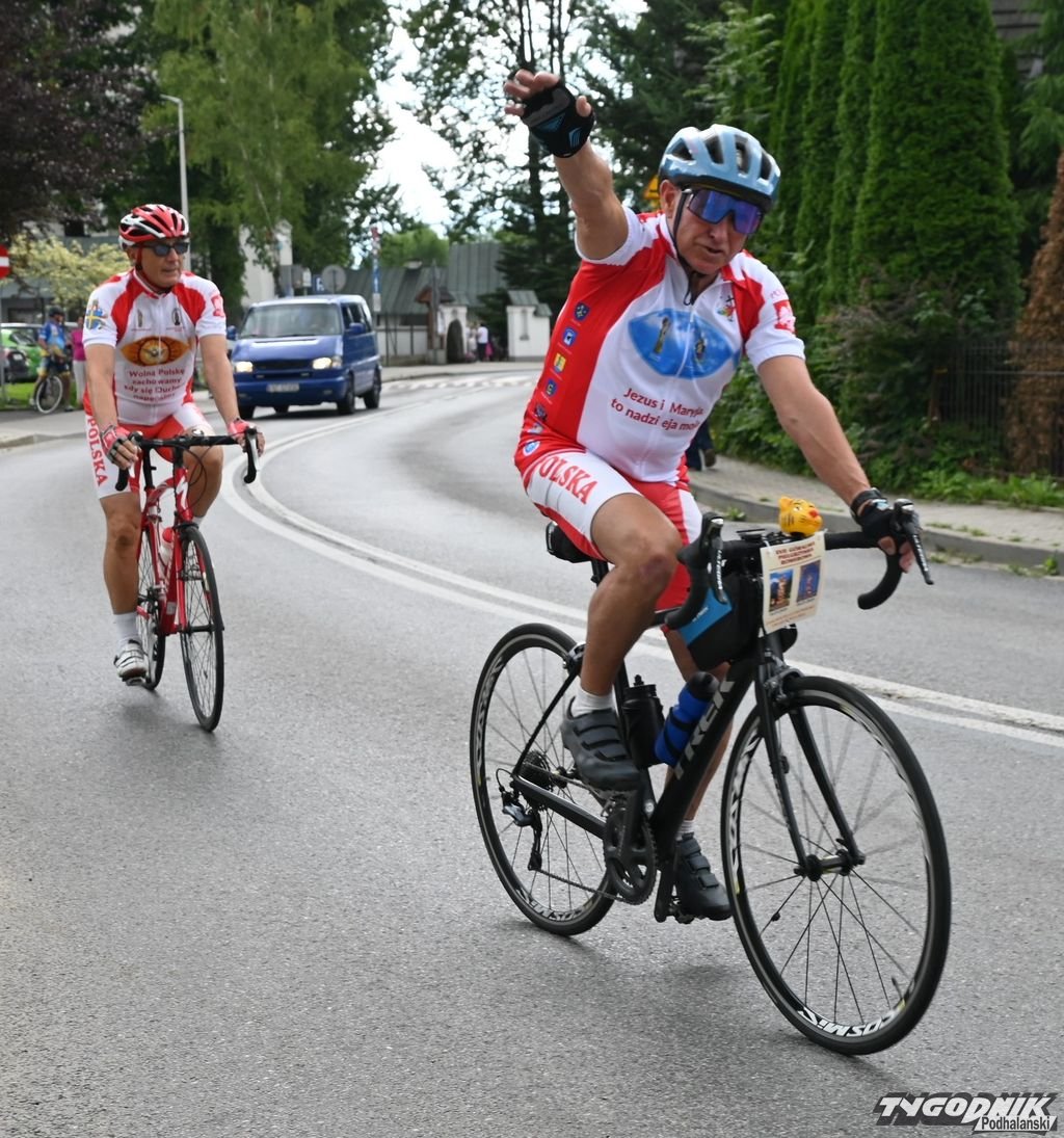 Wśród pątników byli górale z Jabłonki - pan Bogusław i pan Piotr. - Boguś jedzie pierwszy raz, w końcu go namówiłem, ja wyruszam piąty raz z kolei, mam zatem taki mały jubileusz. Jesteśmy przygotowani kondycyjnie, bo robiliśmy sobie wyprawy rowerowe. Liczymy jednak na dobrą pogodę, byle nie padało, bo człowiek cały mokry, woda leje się do butów. Naprawdę trudno się wtedy jedzie. Choć dla mnie te pielgrzymki, przyznam szczerze, to trochę forma uzależnienia od dobrych ludzi, pozytywnych rozmyślań, świetnej atmosfery - zauważył góral z Jabłonki.