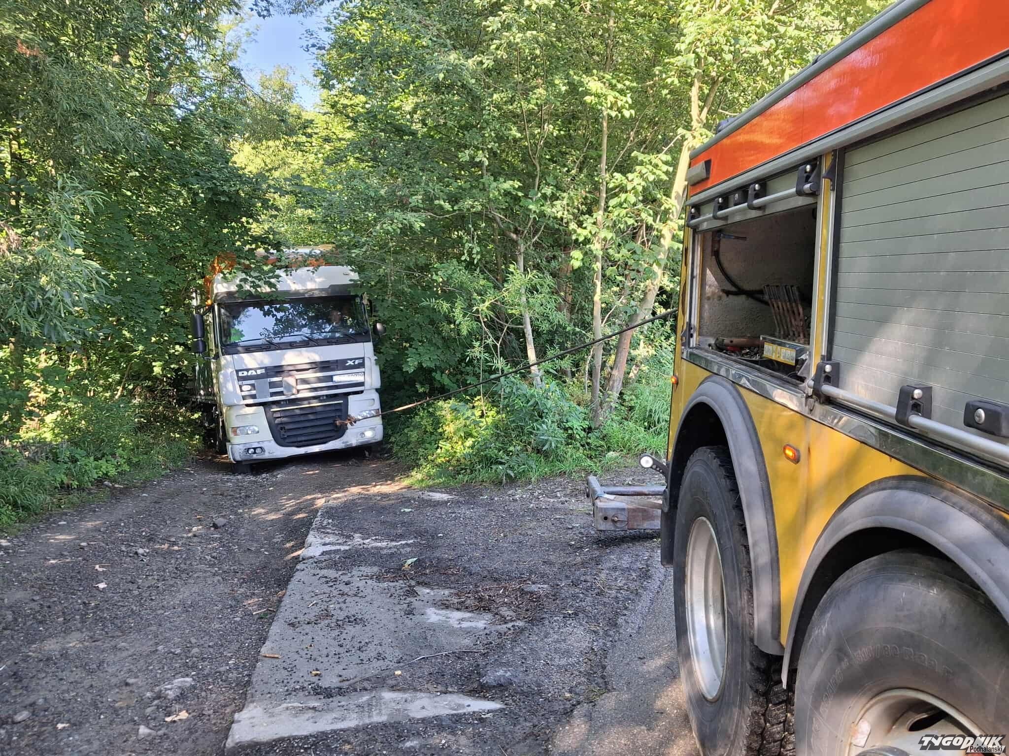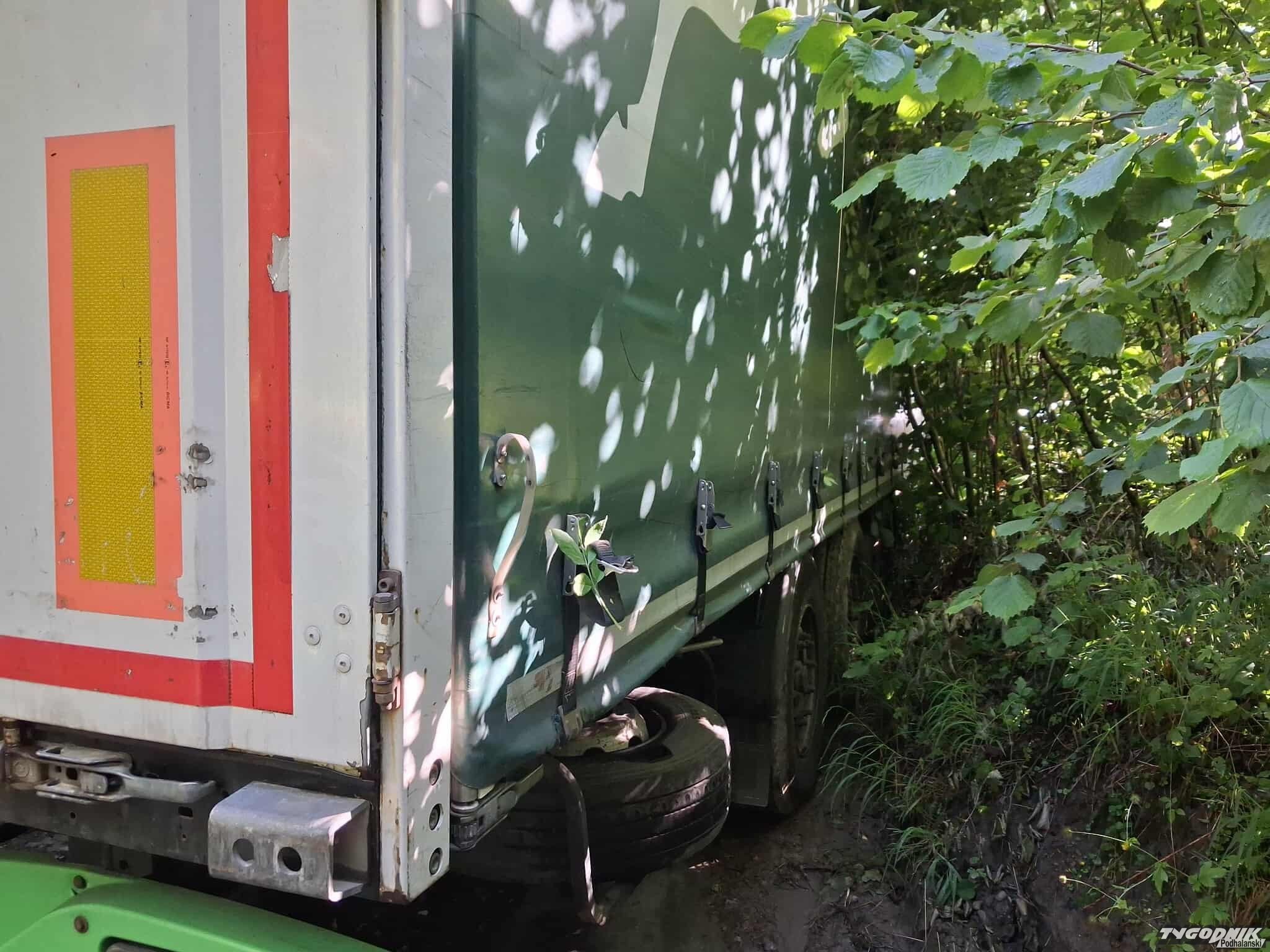 Kierowca czterdziestotonowego tira próbował sobie skrócić drogę i utknął w środku lasu.