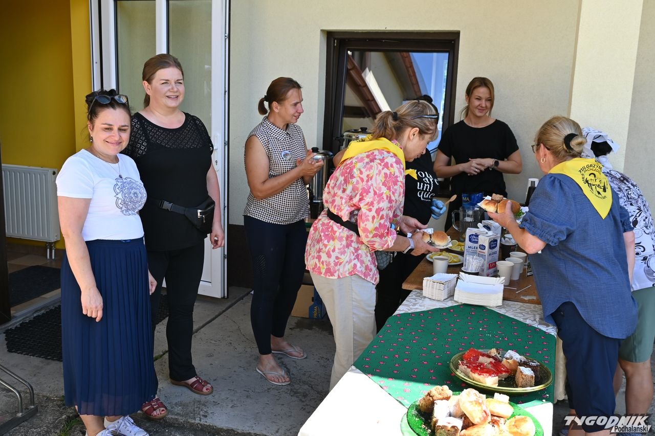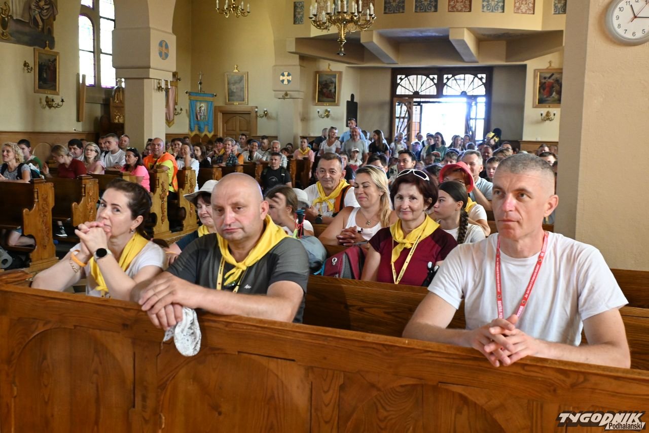 Górale z Bachledówki na pierwszym odcinku zatrzymali się na dłuższym postoju w parafii w Miętustwie, gdzie Związek Podhalan i parafianie przygotowali poczęstunek dla pątników. Była też chwila modlitwy w świątyni i pozdrowienia od ks. proboszcza Janusza Rzepy i ks. wikarego Artura Kulaka. Pielgrzymi zostali też serdecznie przywitani przez wspólnotę parafii w Czarnym Dunajcu.