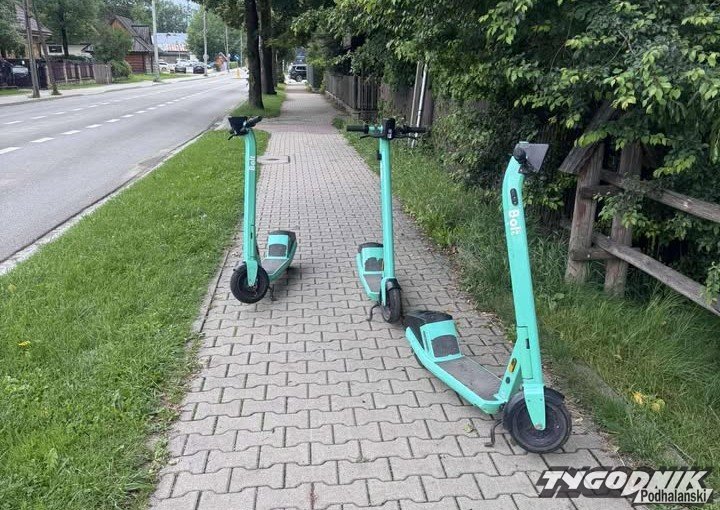 Turyści nadal porzucają hulajnogi w Zakopanem gdzie popadnie.