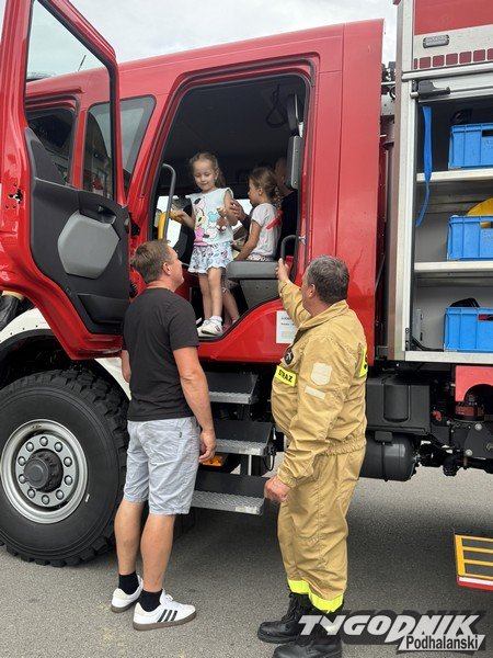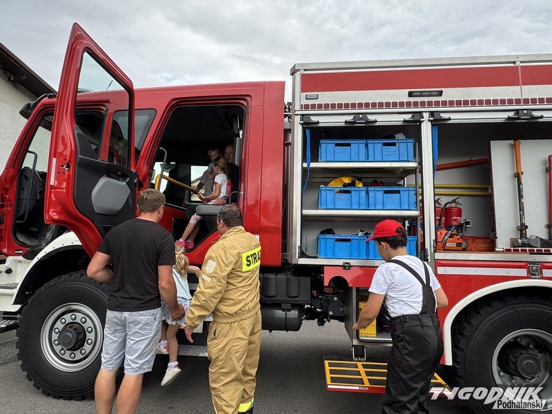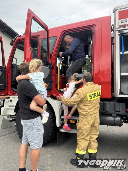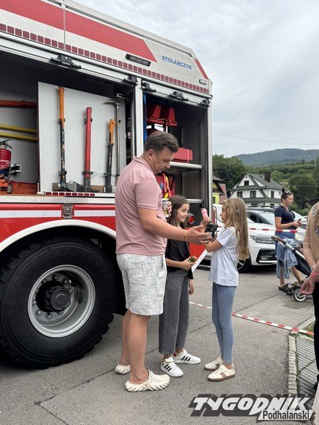 Druhowie z Tylmanowej opowiadali dzieciom o swoje pracy i pokazywali sprzęt strażacki.