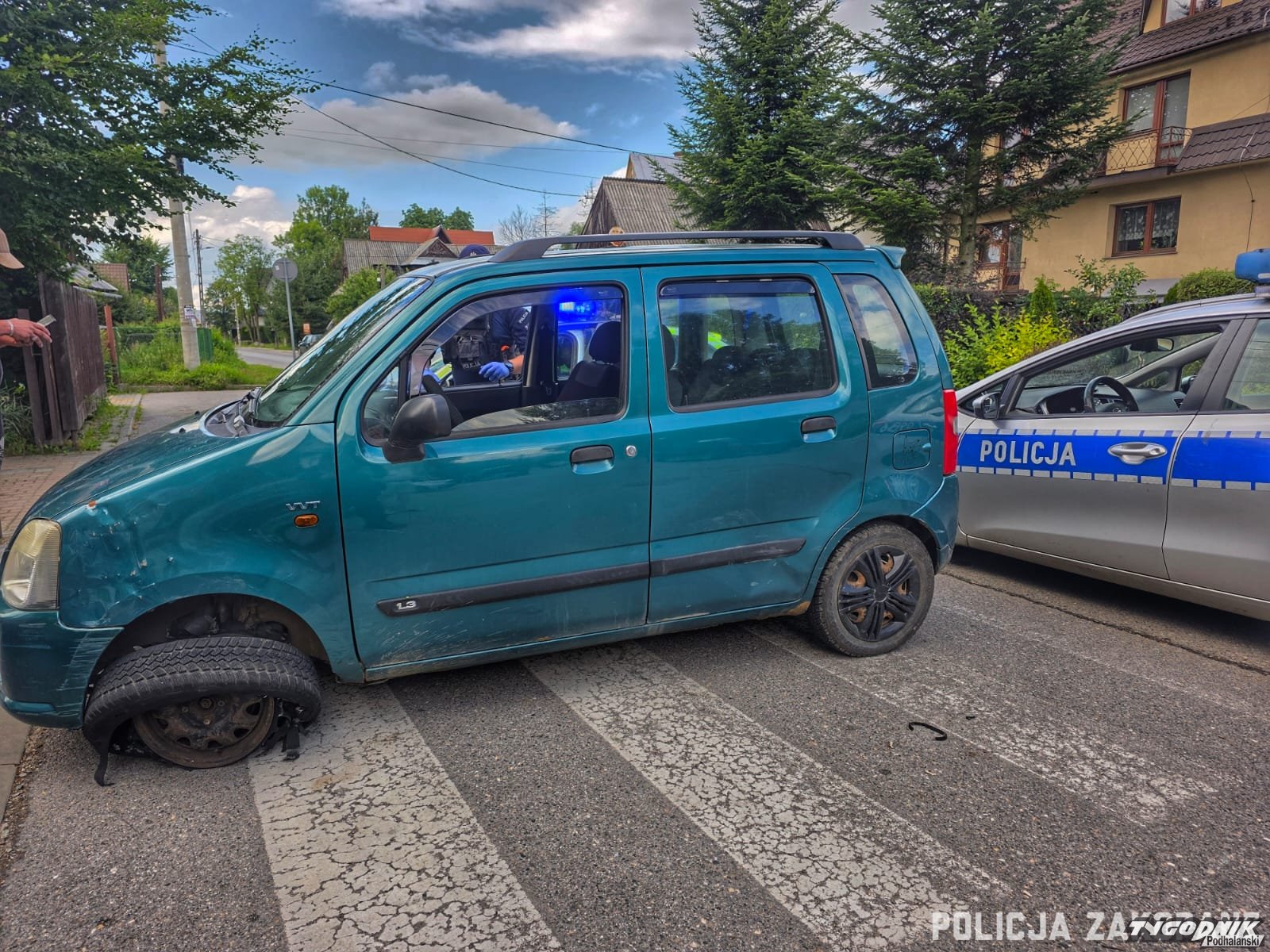 W Poroninie kompletnie pijana para przyjechała samochodem z uszkodzonym kołem po alkohol.
