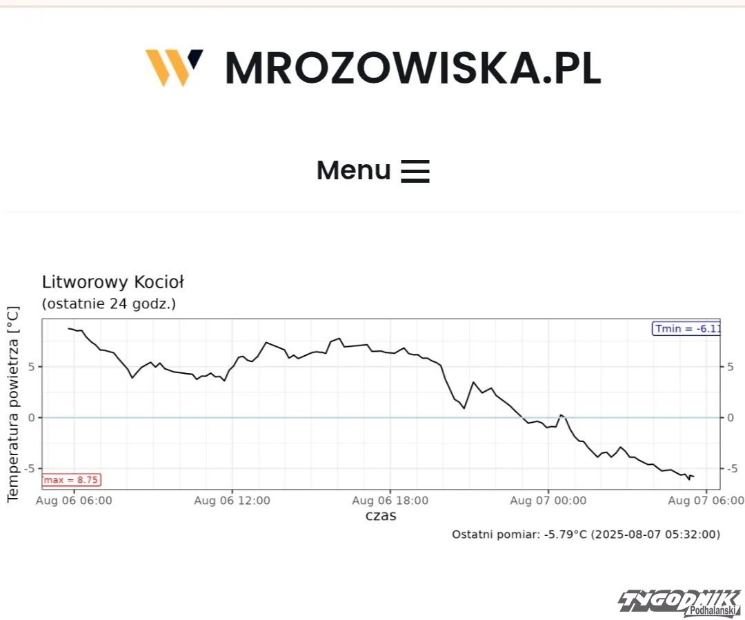 Na termometrze minus pięć stopni, tu padł nowy sierpniowy rekord zimna Polski