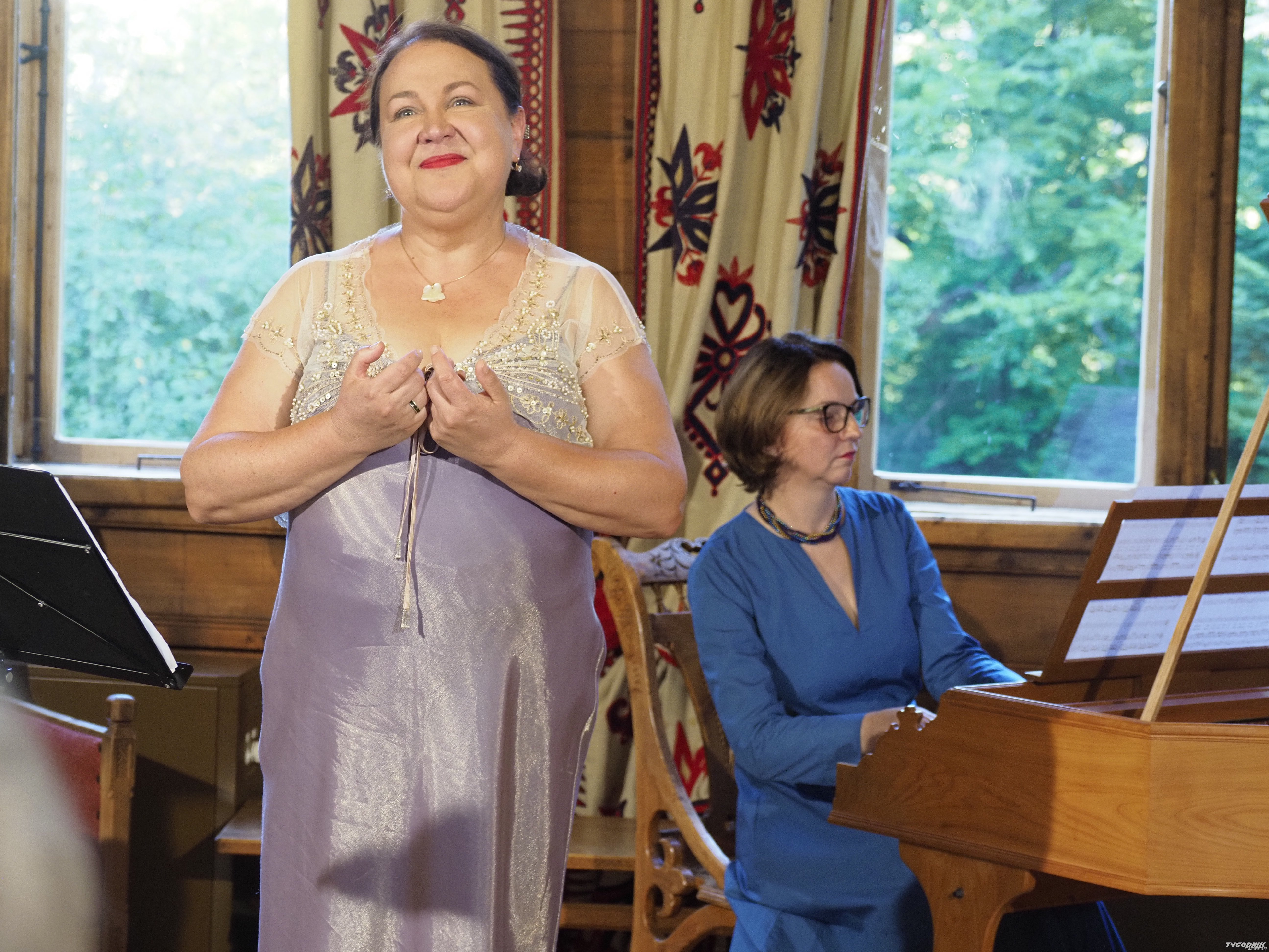 Muzyka mieniła się przeróżnymi barwami emocji plastycznie odmalowanymi przez kompozytora i żywo oddanymi przez wykonawczynie, którymi były Katarzyna Wiwer - sopran i Joanna Solecka, grająca na klawesynie. Artystki znane i cenione w krakowskim, i nie tylko, świecie muzycznym właśnie dokonały nagrania wszystkich pieśni Ogińskiego, a płyta CD ukaże się jeszcze w tym roku. Publiczność zebrana w domu Pod Jedlami była oczarowana świetnym, pełnym życia i niepozbawionym humoru wykonaniem. To był niezapomniany wieczór.