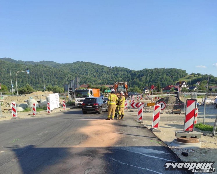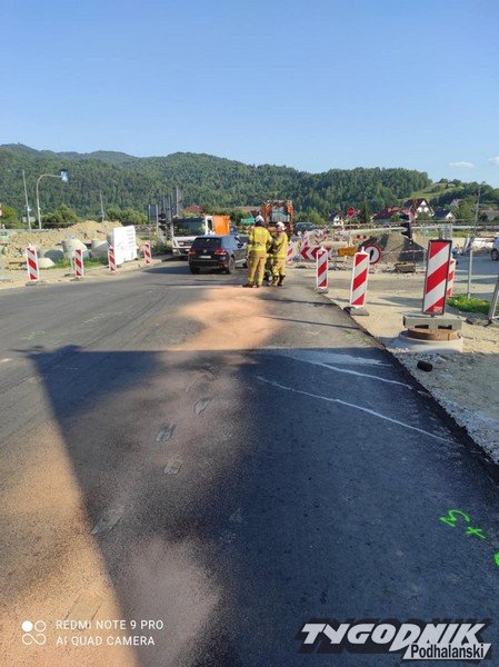 Wielka plama oleju na drodze