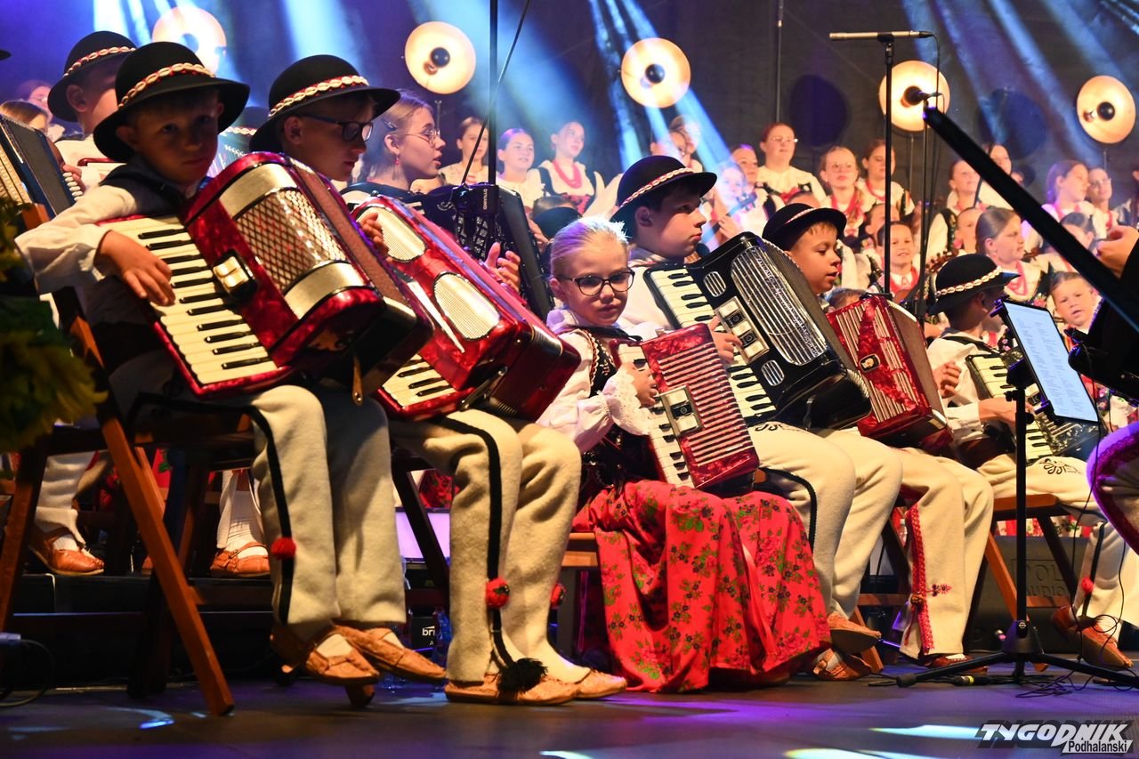 Młodzi muzycy nie tylko dali wspaniały pokaz śpiewu, ale także gry. Rozbudowane instrumentarium, w którym obok skrzypiec, akordeonów i kontrabasów pojawiły się cymbały, altówka węgierska oraz perkusjonalia sprawiły wielką radość publiczności.