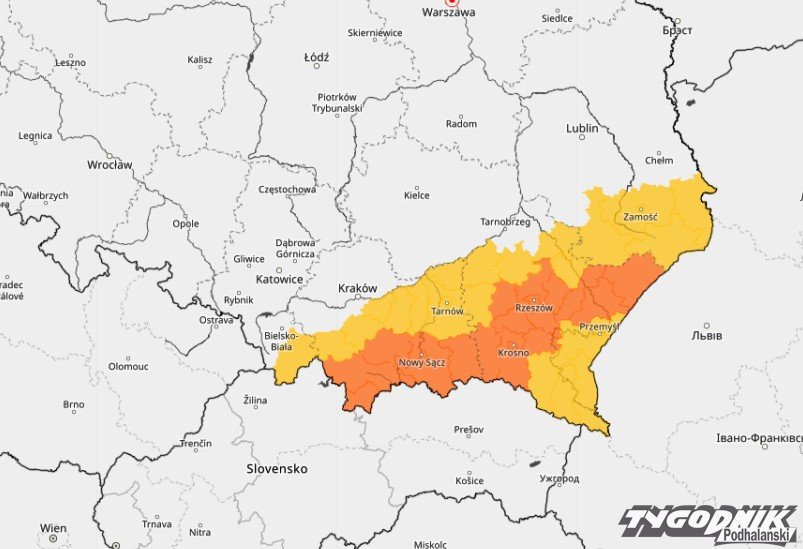 Pogodowe ostrzeżenia dla Podhala. Silny deszcz z burzami