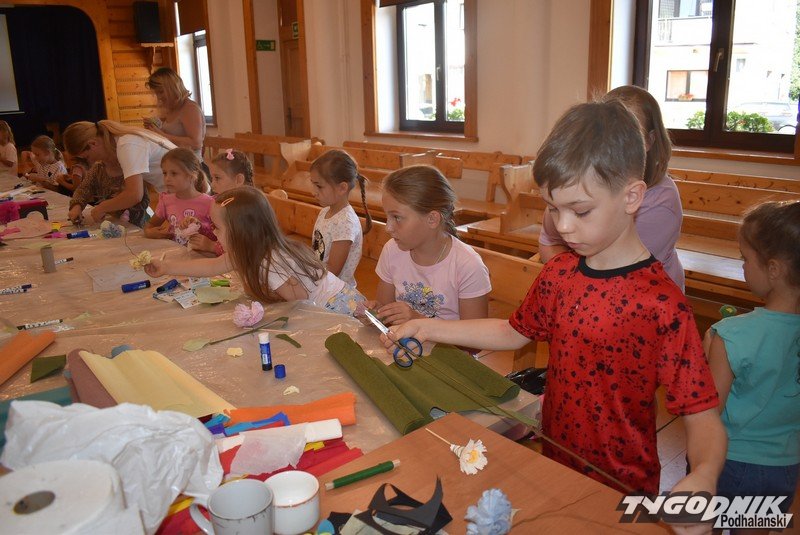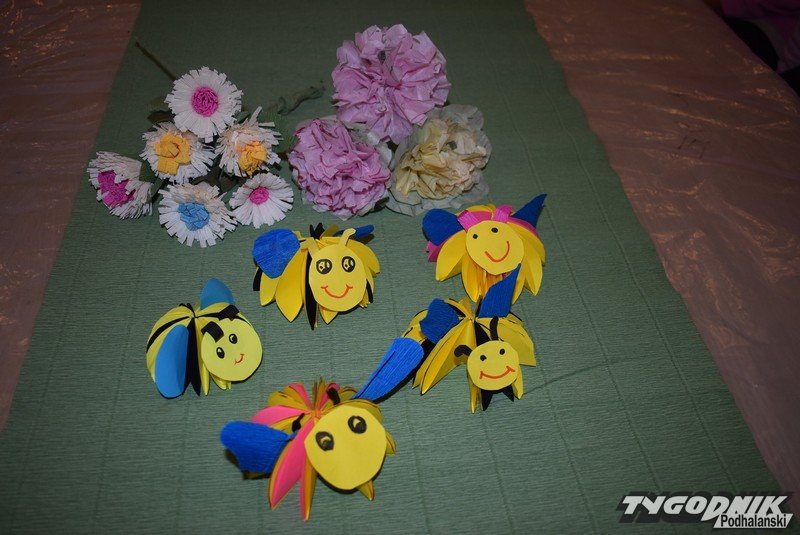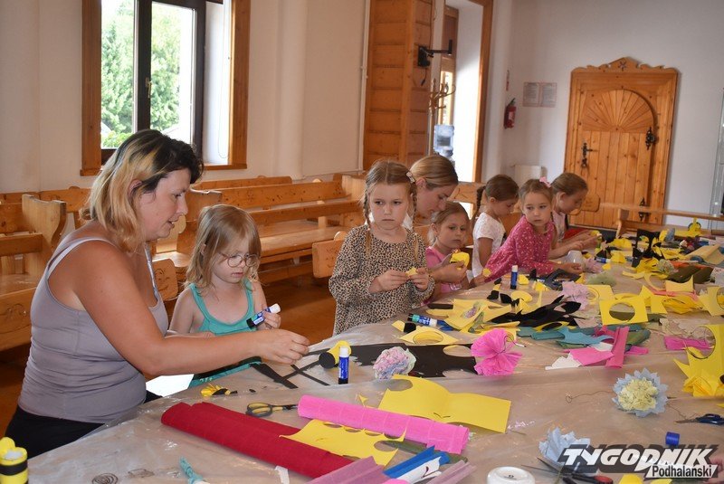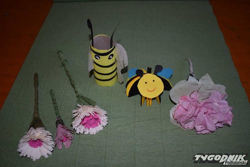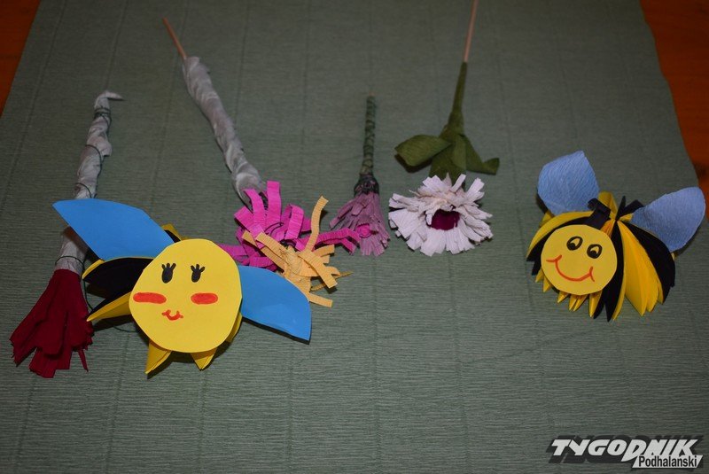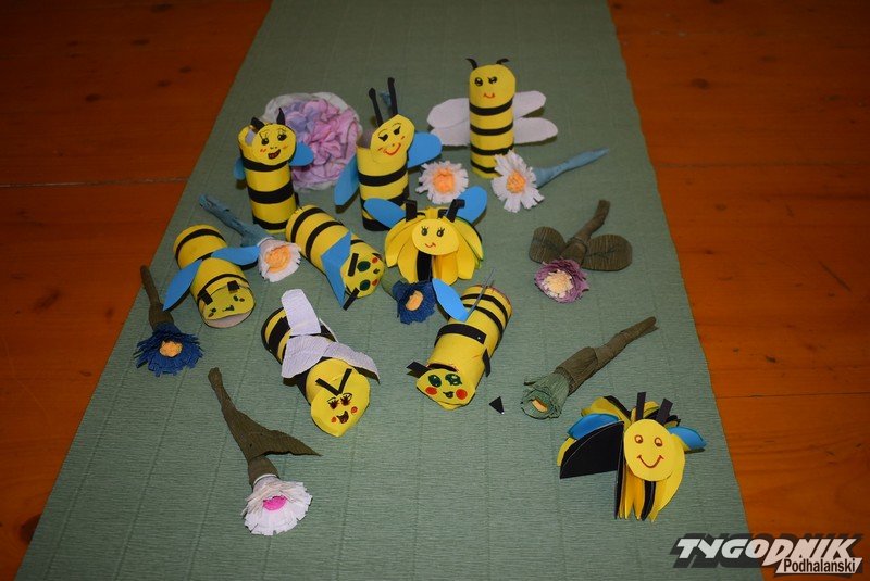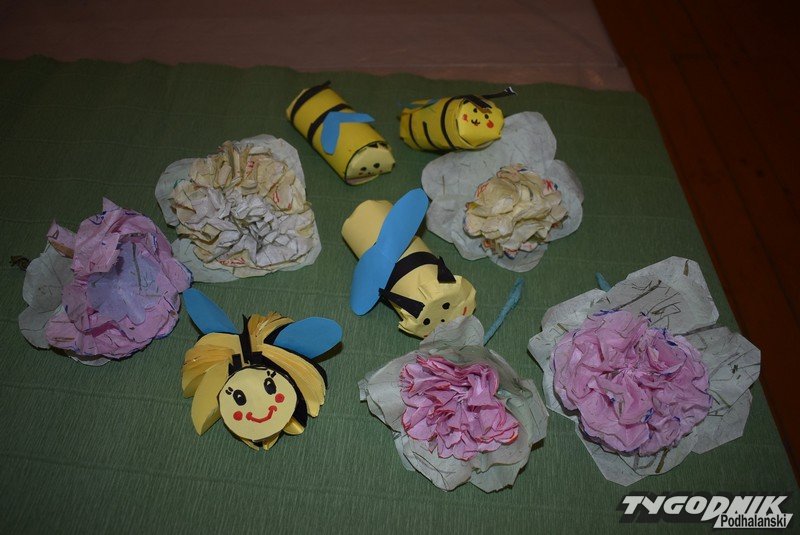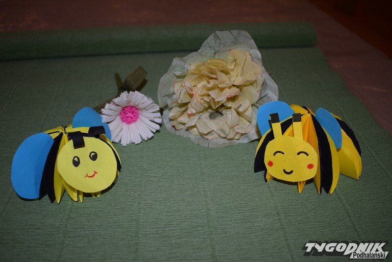 Dzieci tworzyły pełne kolorów kwiaty i pszczoły.