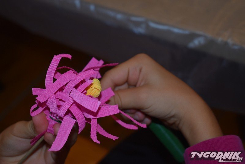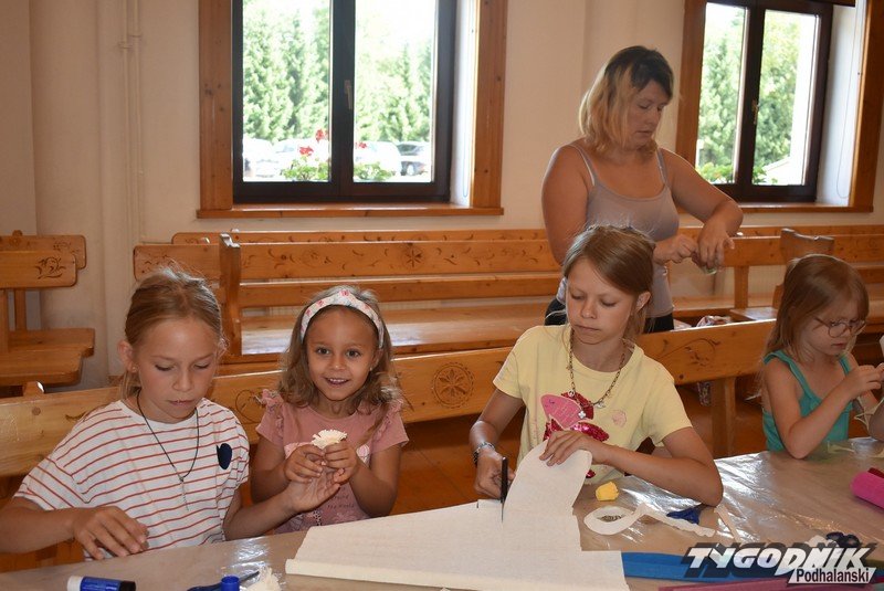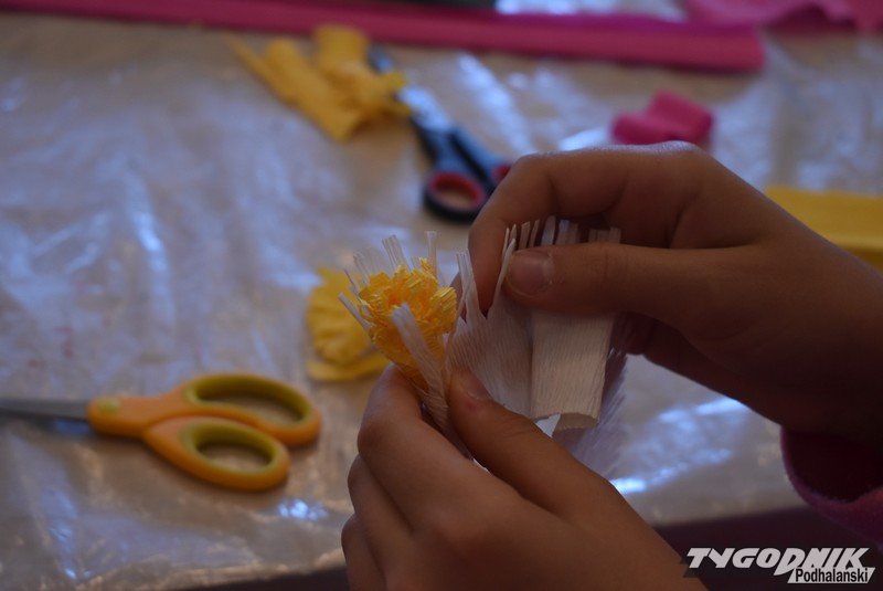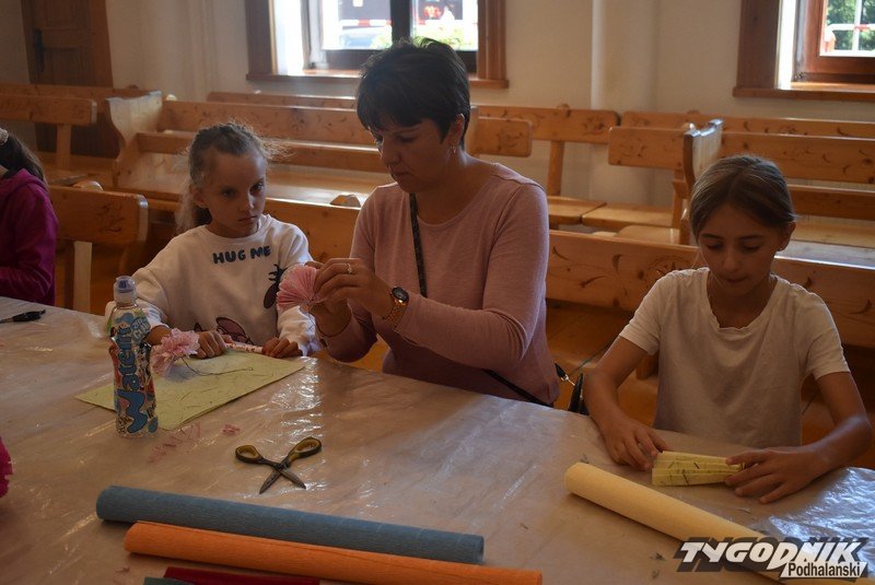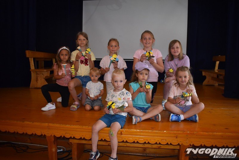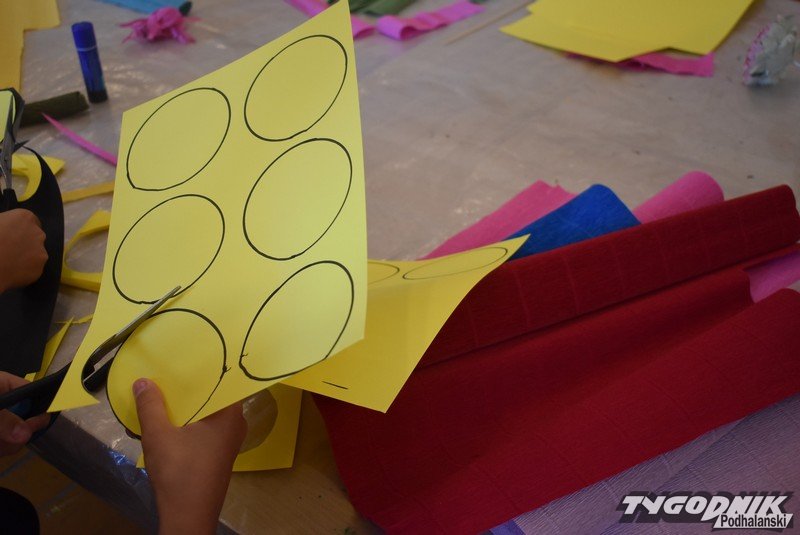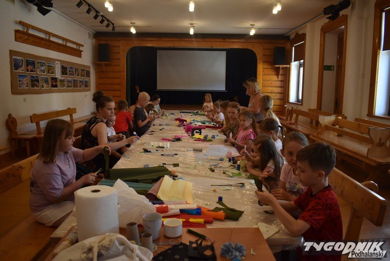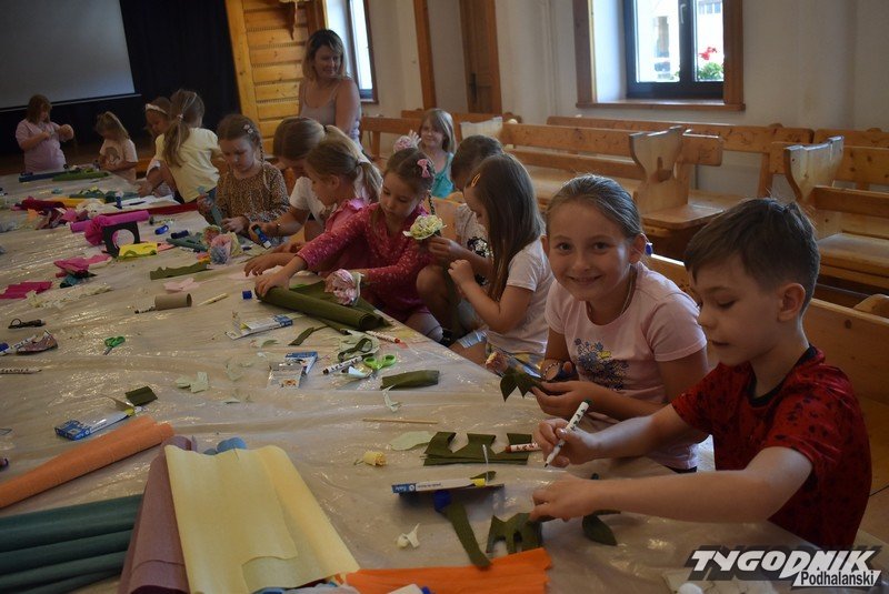 Dzieci tworzyły pełne kolorów kwiaty i pszczoły.