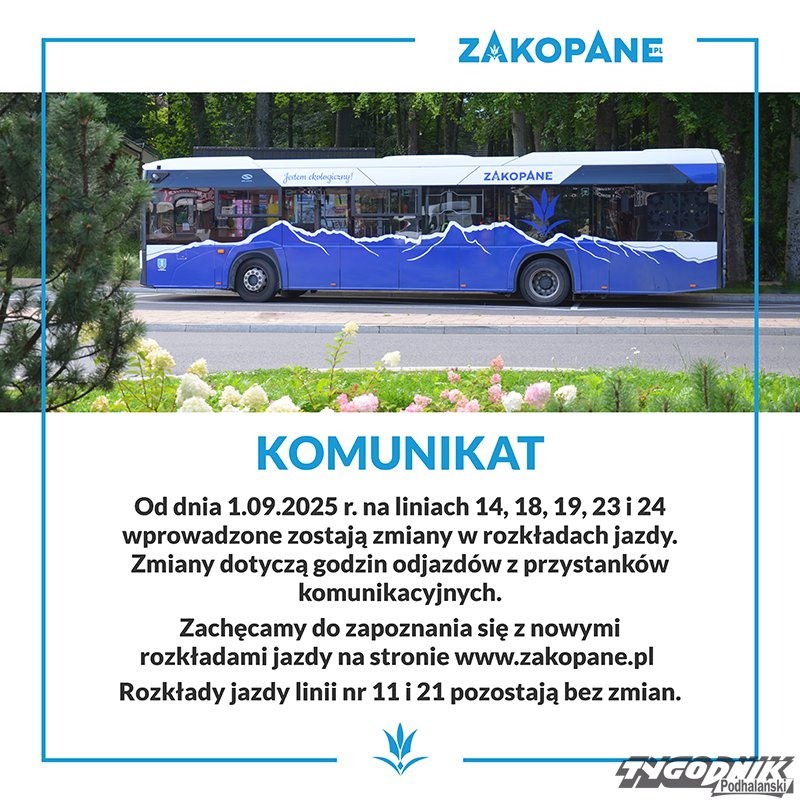 Zmiany w komunikacji miejskiej w Zakopanem