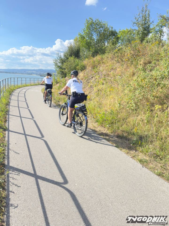 Policjanci kontrolowali rowerzystów na ścieżce wokół Jeziora Czorsztyńskiego.