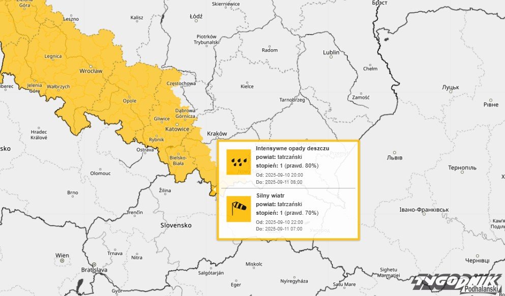 Na najbliższą noc Instytut Meteorologii i Gospodarki Wodnej wydał dwa ostrzeżenia meteo na najbliższą noc dla całego Podhala.