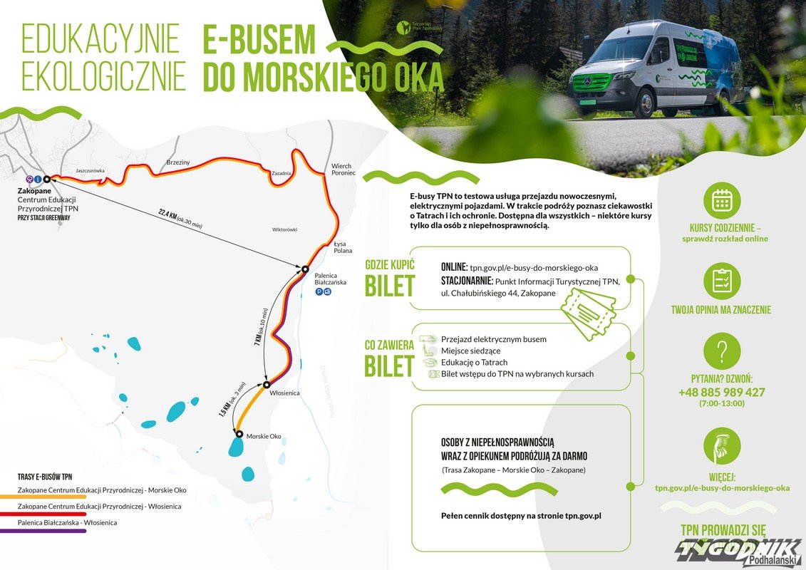 W odróżnieniu od tradycyjnych usług przewozowych, e-busy TPN pełnią również funkcję edukacyjną – każdy przejazd to okazja do wysłuchania krótkich opowieści o przyrodzie, kulturze i historii Tatr, przygotowanych przez edukatorów Parku. To forma edukacji w ruchu, łącząca komfort z misją ochrony przyrody.