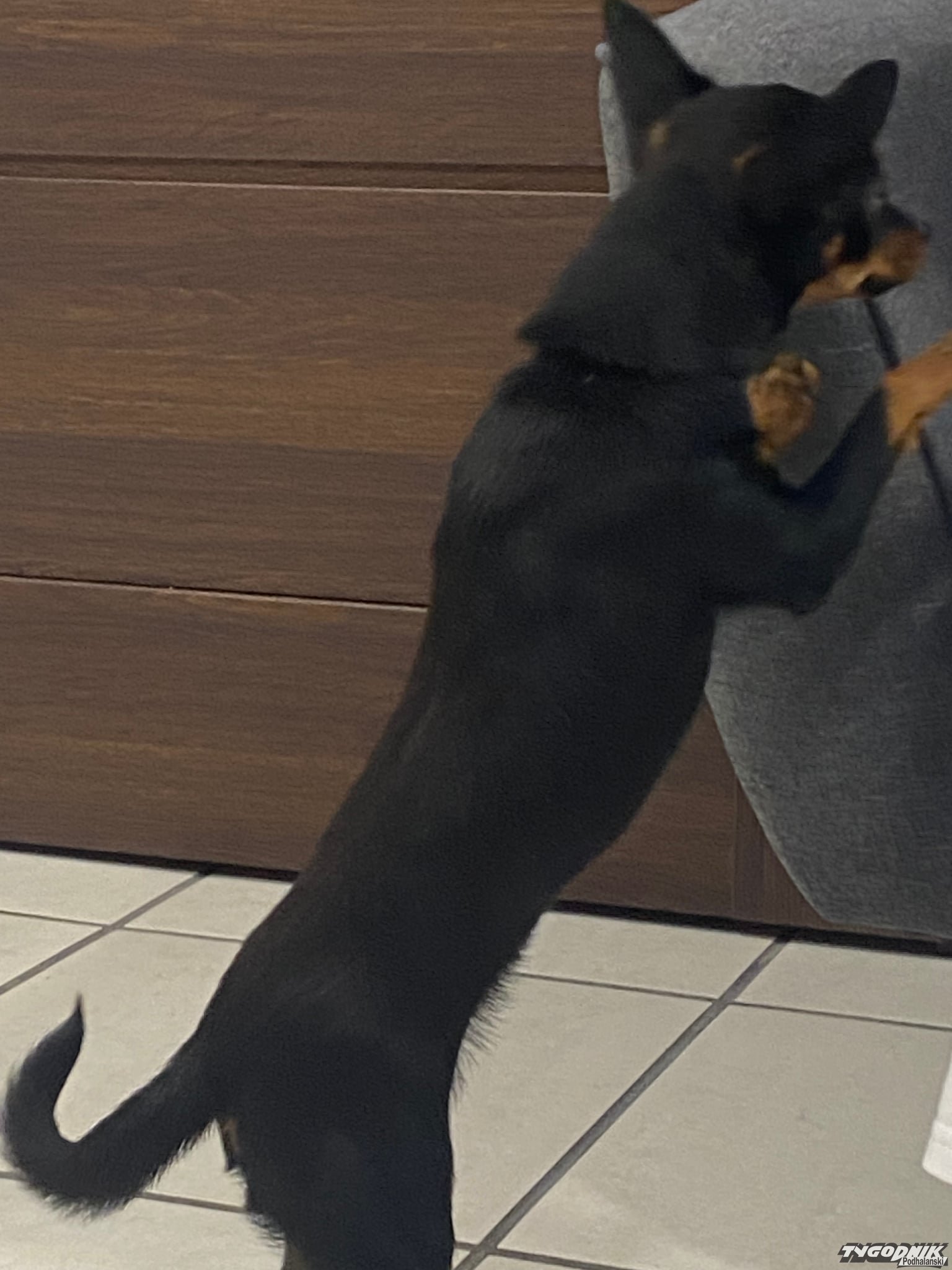 Być może ktoś szuka tej czarnej suczki w typie ratlerka.