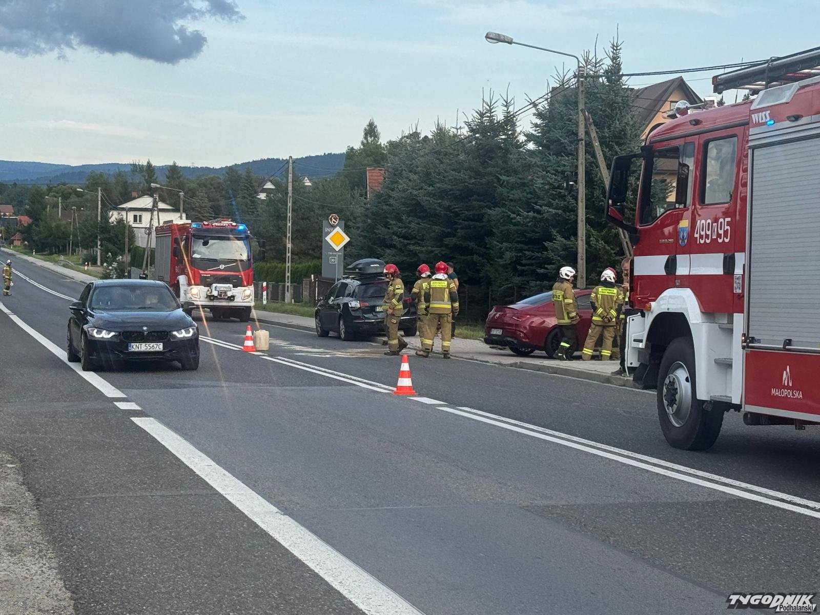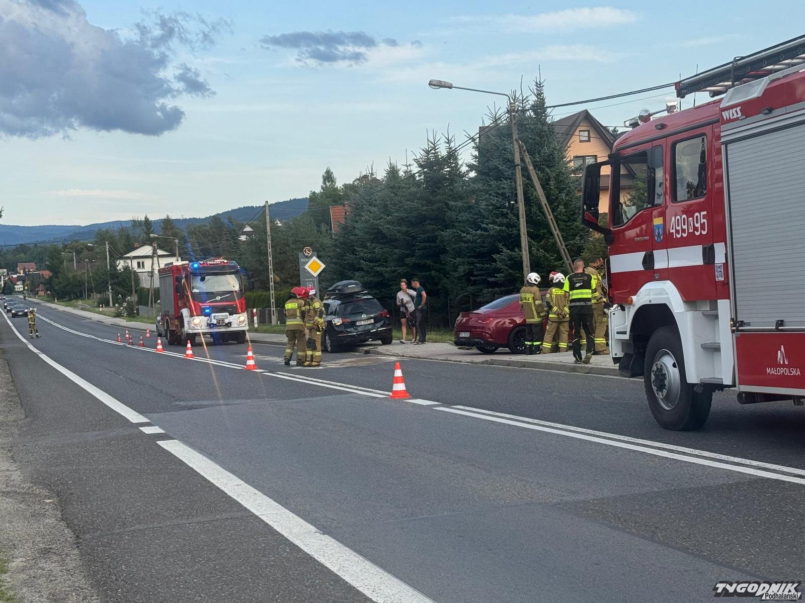 Do wypadku doszło w centrum wsi na Chyżniance. Na szczęście nikt w zderzeniu nie odniósł poważniejszych obrażeń. Na miejscu pracują strażacy z rabczańskiej Jednostki Ratowniczo-Gaśniczej i druhowie OSP Spytkowice a także policja. Ruch odbywa się wahadłowo.