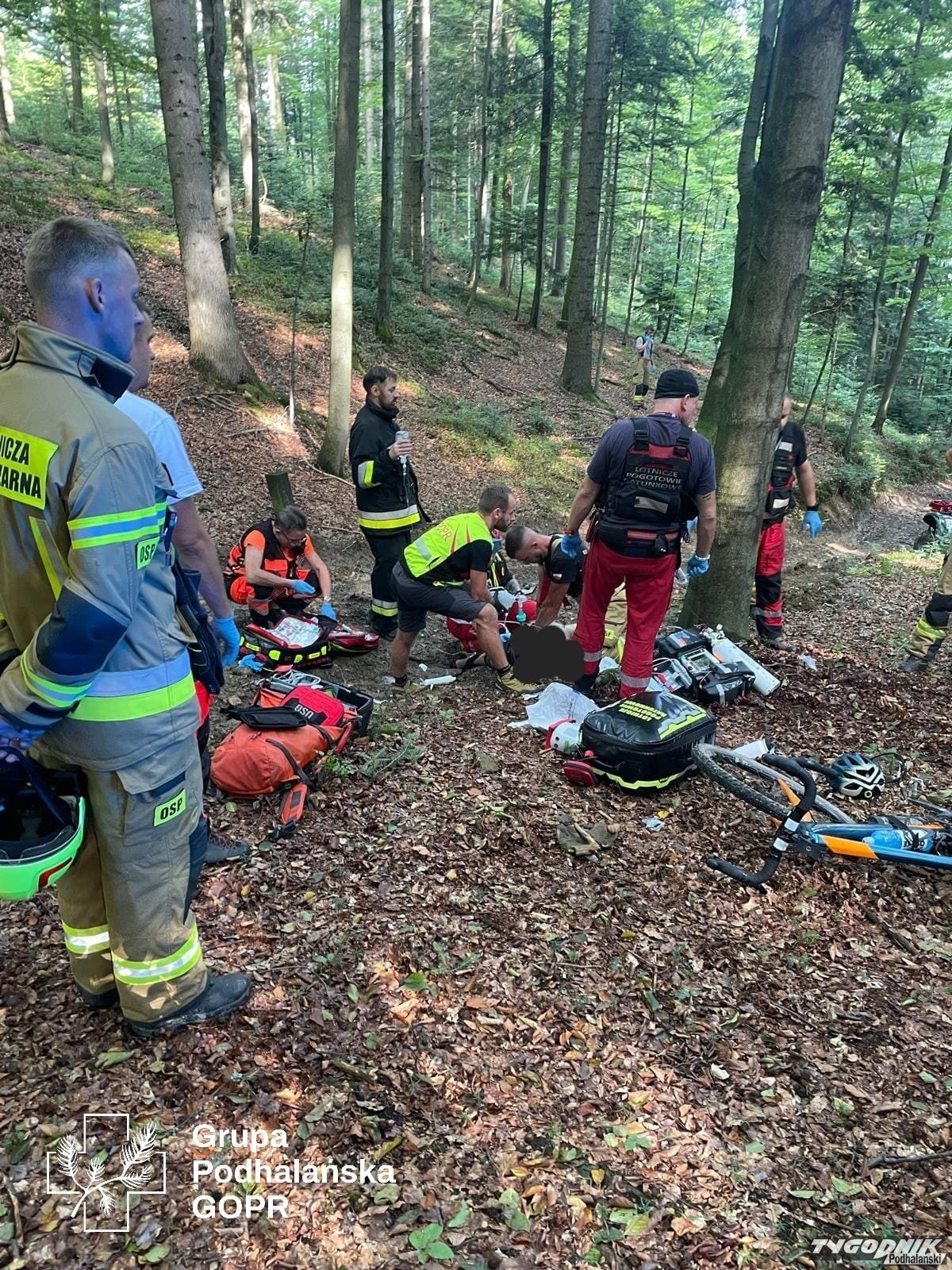 Informacja o wypadku dotarła do ratowników Podhalańskiej Grupy GOPR ok. godz. 13. Informacja mówiła o tym, że w rejonie Parszywki doszłó do wypadku rowerzysty, który jest nieprzytomny. Na miejsce ratownicy GOPR wyruszyli z Rabki. Na pomoc wezwano także śmigłowiec Lotniczego Pogotowia Ratunkowego. Na miejscu nie zlokalizowano poszkodowanego. Odnaleziono go po krótkich poszukiwaniach. Na miejscu resuscytację prowadził świadek wypadku.