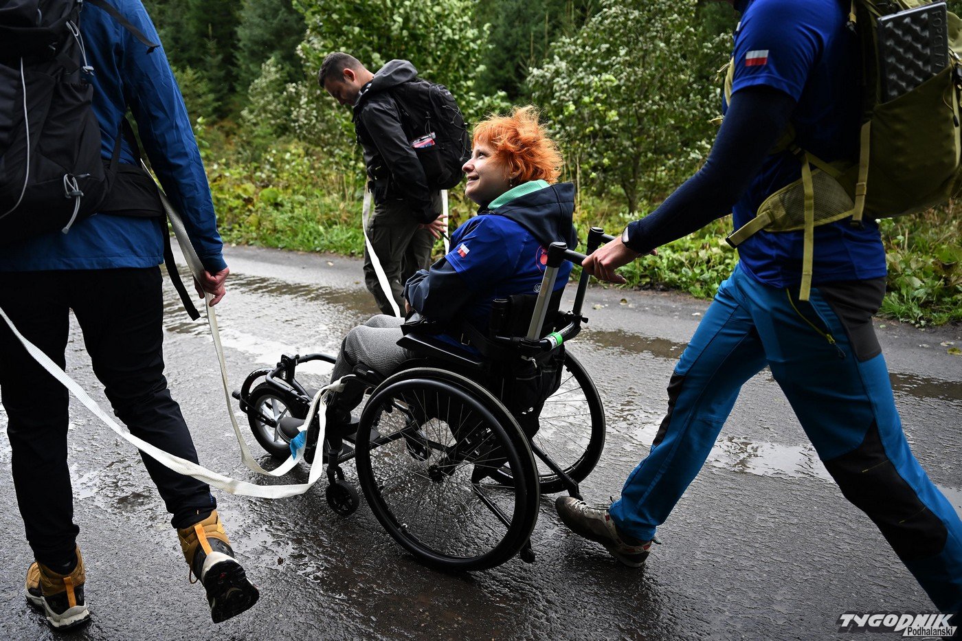 Łącznie, w deszczowy wtorek, trasę do Morskiego Oka i z powrotem pokonało około stu osób. Wśród nich były osoby z niepełnosprawnością intelektualną, ruchową, niedowidzące i niewidome.