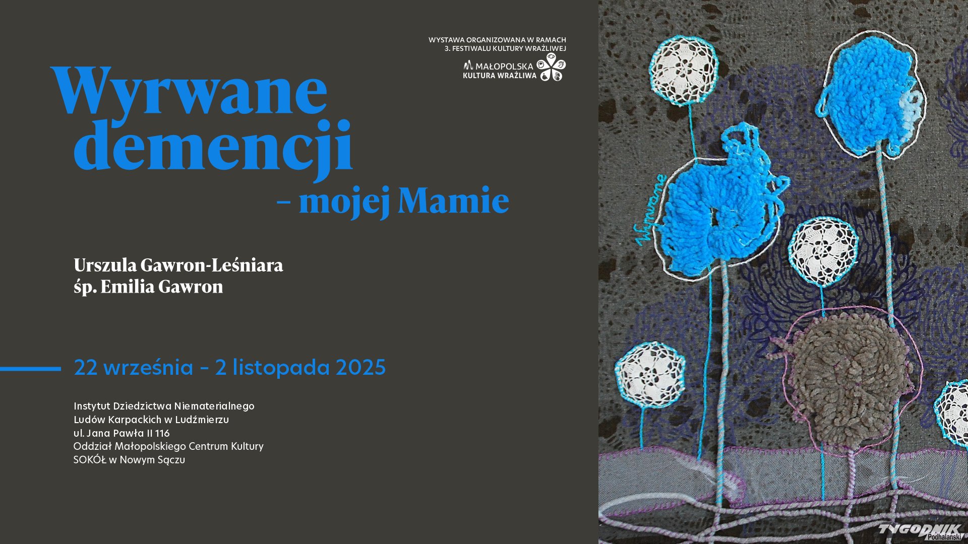 W ramach 3. Festiwalu Kultury Wrażliwej zapraszamy na otwarcie wystawy Urszuli Gawron-Leśniary "Wyrwane demencji - mojej Mamie".