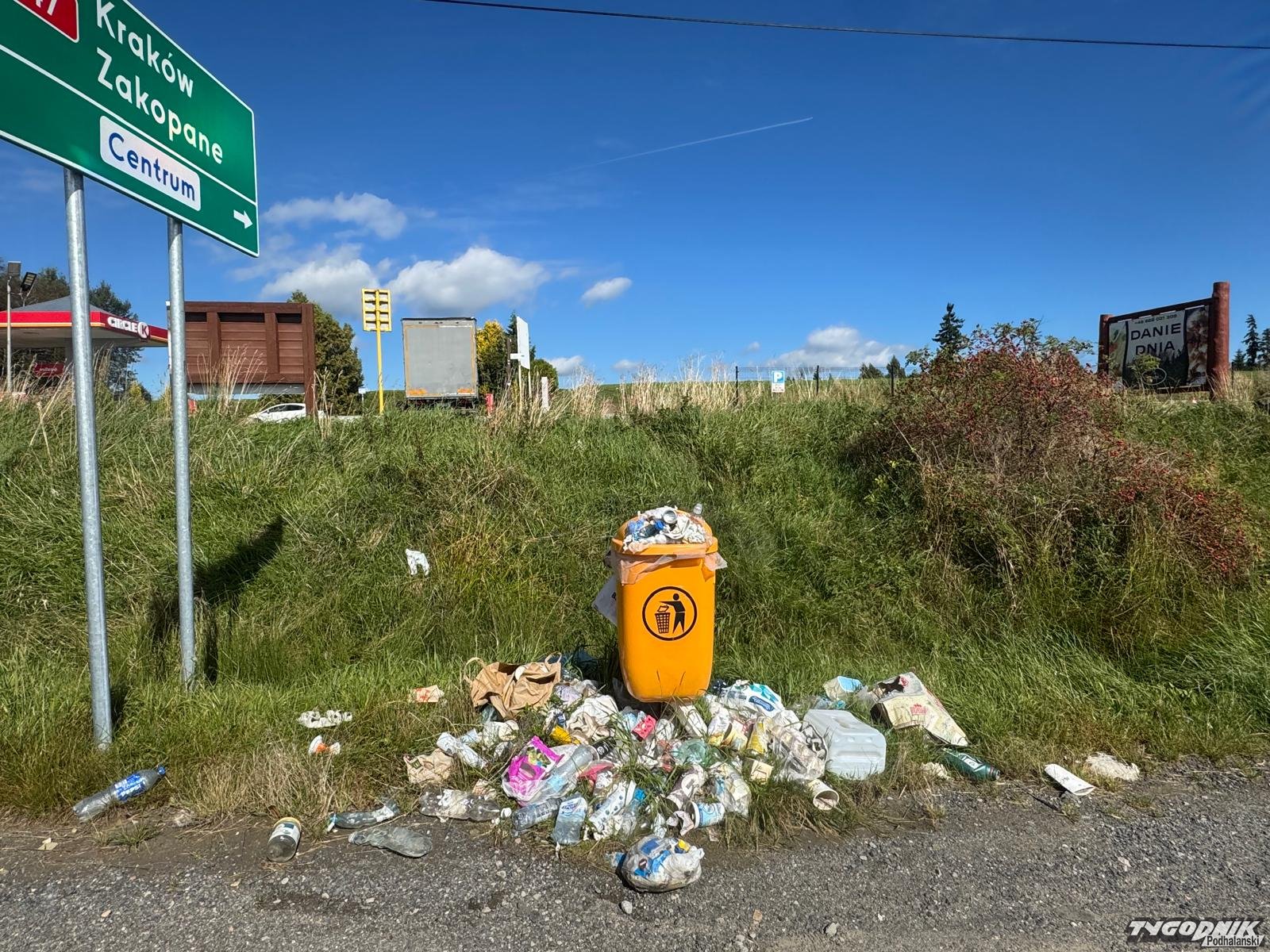 Parking przy starej zakopiance, w rejonie stacji benzynowej w Rdzawce to miejsce gdzie w sezonie zostawiają swe samochody turyści wybierający się w Gorce. Gdy drogą na tym odcinku administrowała Generalna Dyrekcja Dróg Krajowych i Autostrad parkingowe kosze były opróżniane. Niedawno, w związku z oddaniem do użytku nowego odcinka zakopianki, stara droga zyskała nowych administratorów. Parking znajduje się dokładnie na granicy odcinka administrowanego przez Powiatowy Zarząd Dróg w Nowym Targu i rabczańską gminę. Widać, że przy tej zmianie administracyjnej, ktoś przeoczył kwestię opróżniania śmietników. Jak zapewniają przedstawiciele PZD, sprawa zostanie rozeznana, co do kompetencji gminy i powiatu a teren - wysprzątany.