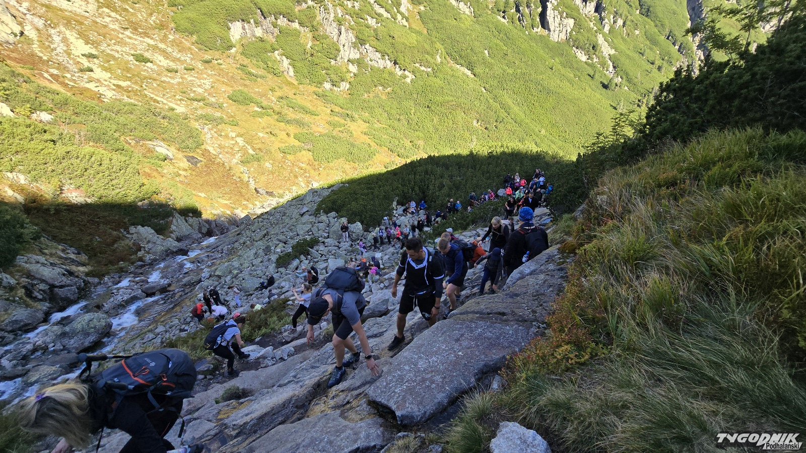 Jeszcze o godz. 7 rano nad Morskim Okiem nie było wielu turystów przed południem trasa jest już oblężona. Korki w rejonie Wierchu Porońca tworzą się nawet o godz. 11:20.