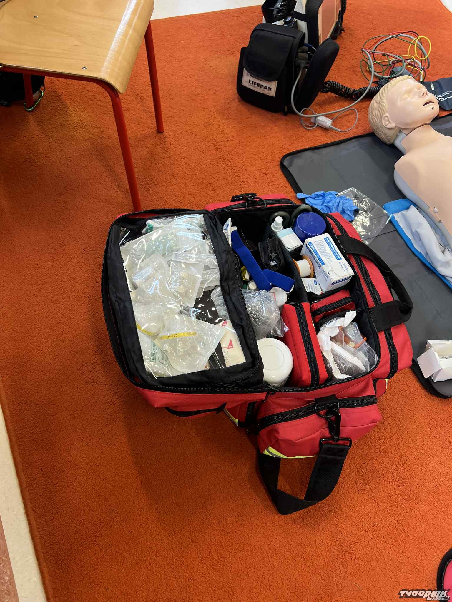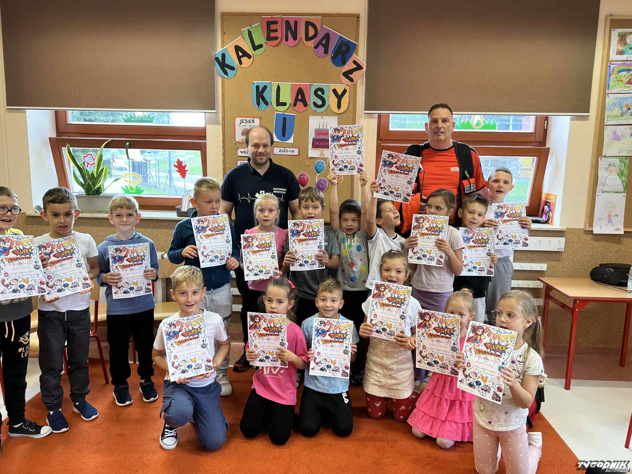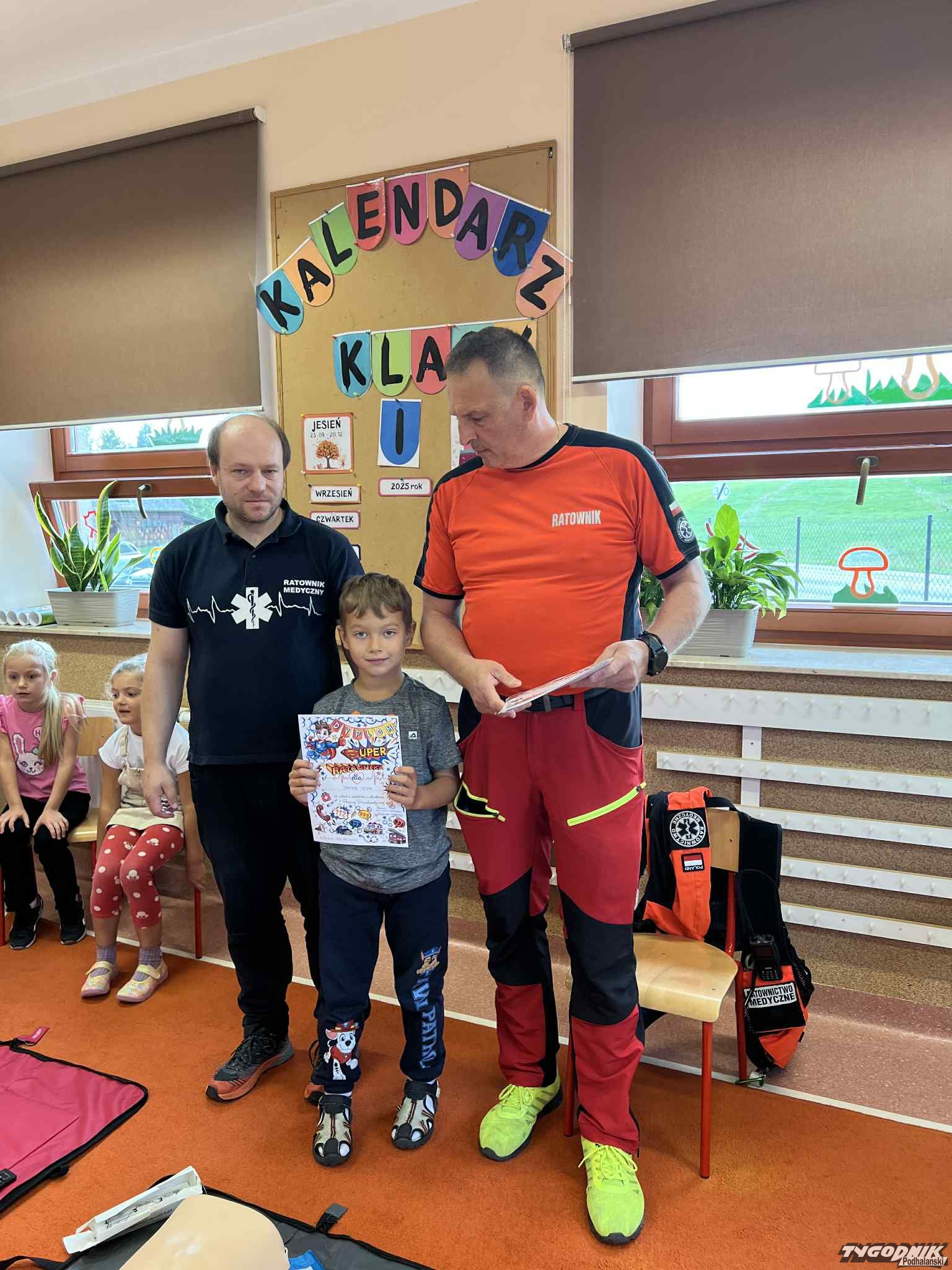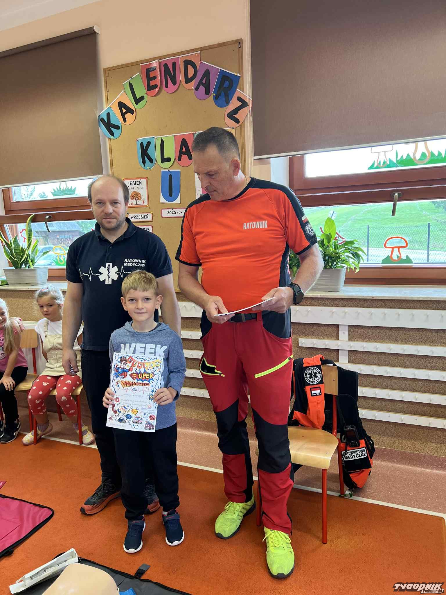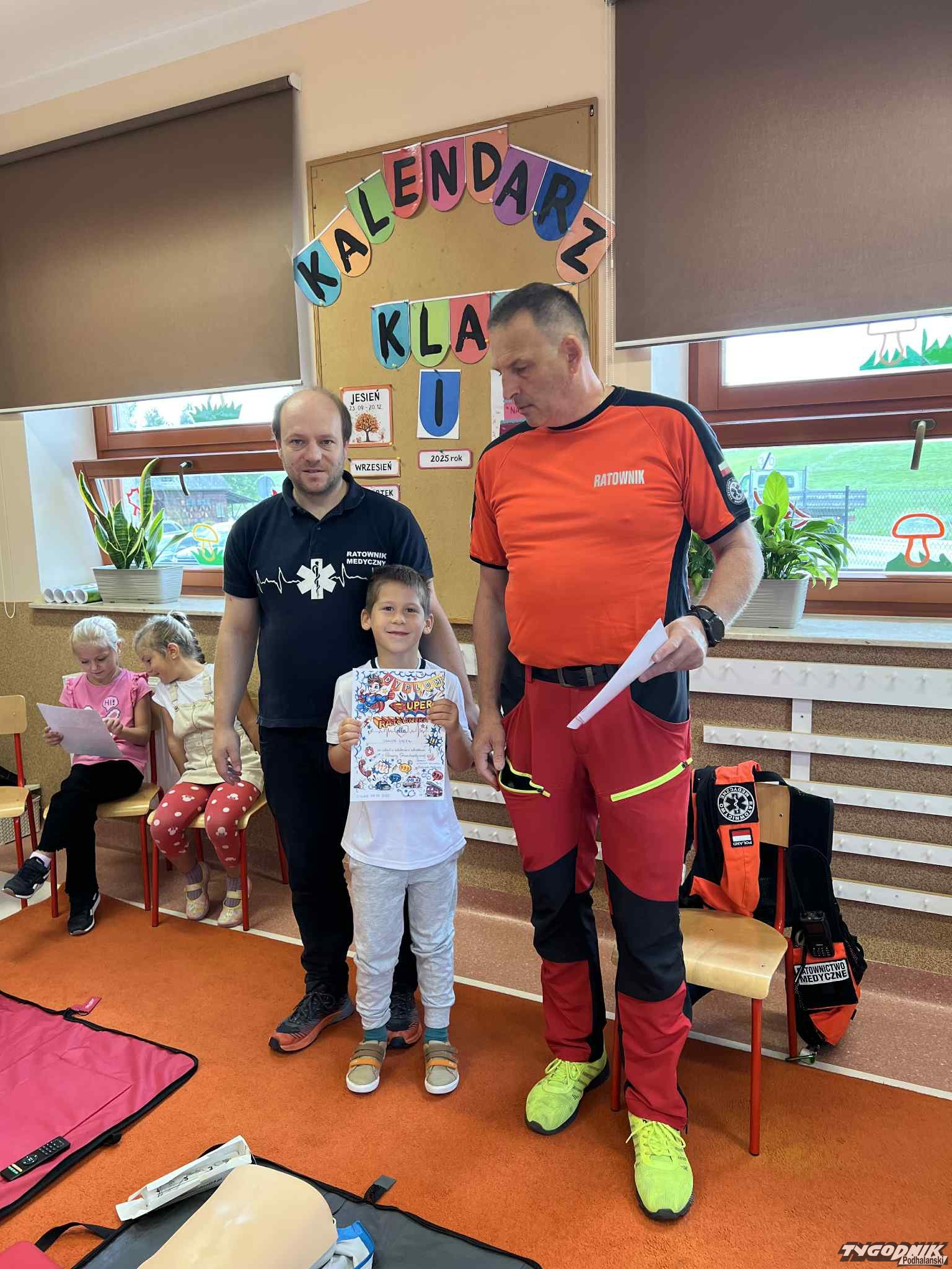 Uczniowie mogli zobaczyć z bliska wyposażenie kamizelki ratownika, niezbędną torbę ratowniczą oraz wnętrze karetki pogotowia. Ratownicy przeprowadzili również praktyczne szkolenie z zakresu pierwszej pomocy. Dzieci przypomniały sobie numery alarmowe, dowiedziały się, jak działa defibrylator, a także mogły spróbować własnych sił w prowadzeniu masażu serca. Na zakończenie każdy uczeń otrzymał pamiątkowy dyplom potwierdzający udział w szkoleniu. Było to niezwykle pouczające i ciekawe spotkanie, które na długo pozostanie w pamięci pierwszoklasistów.