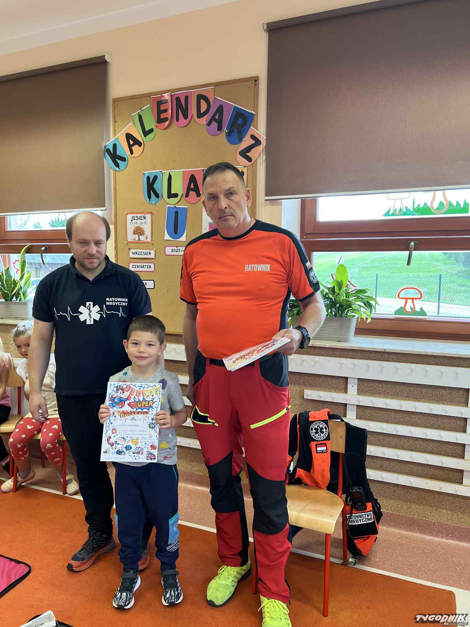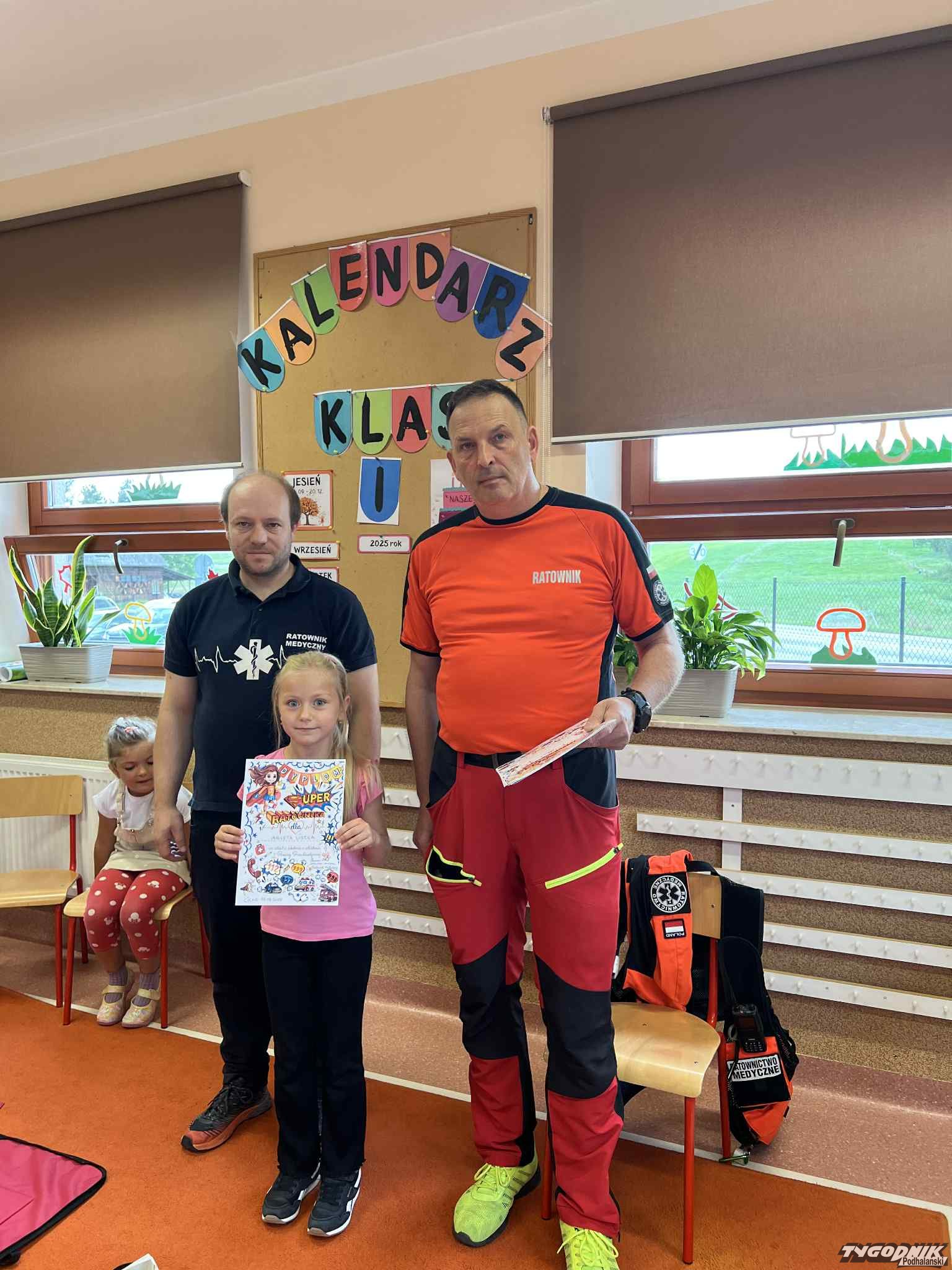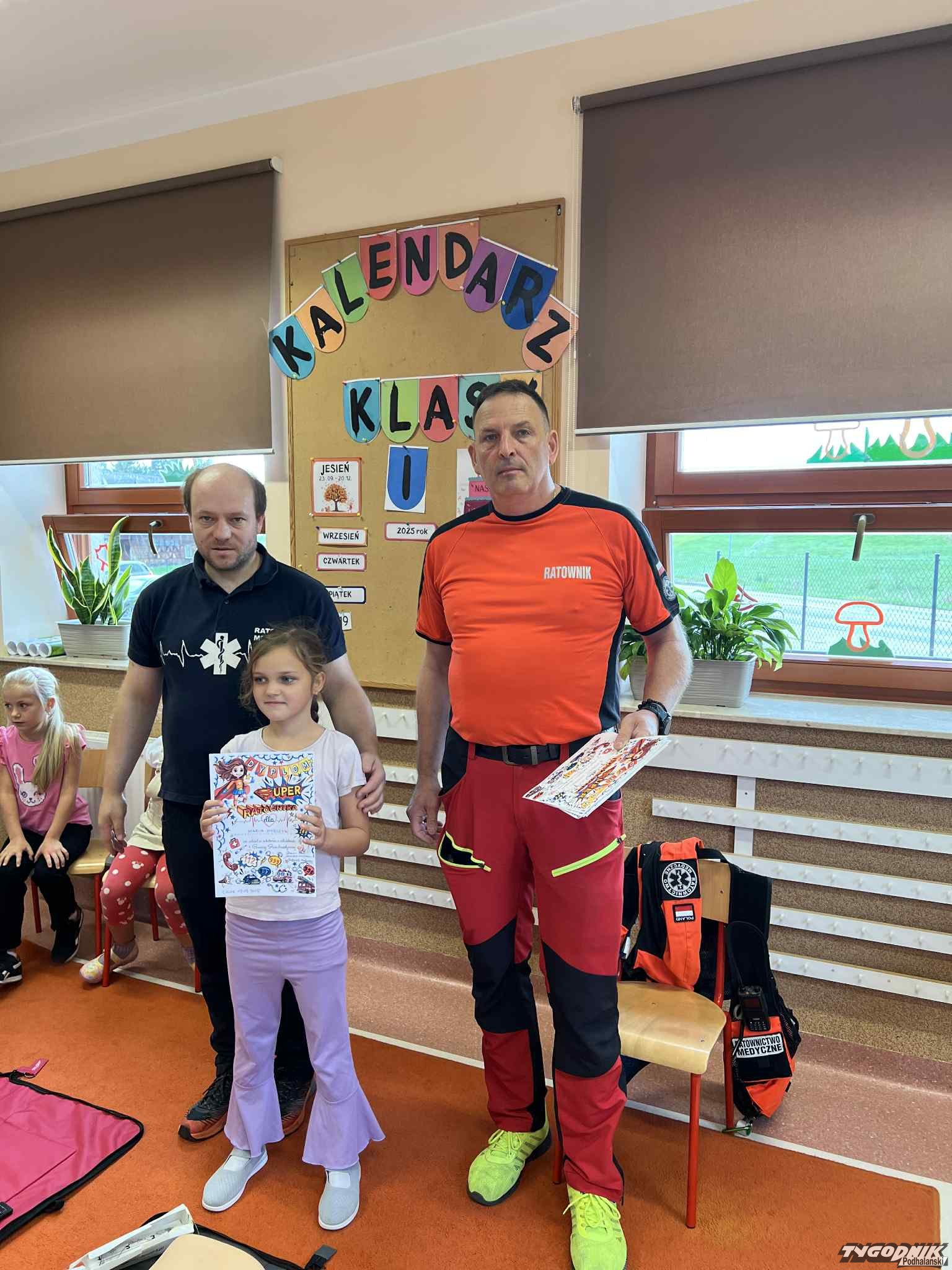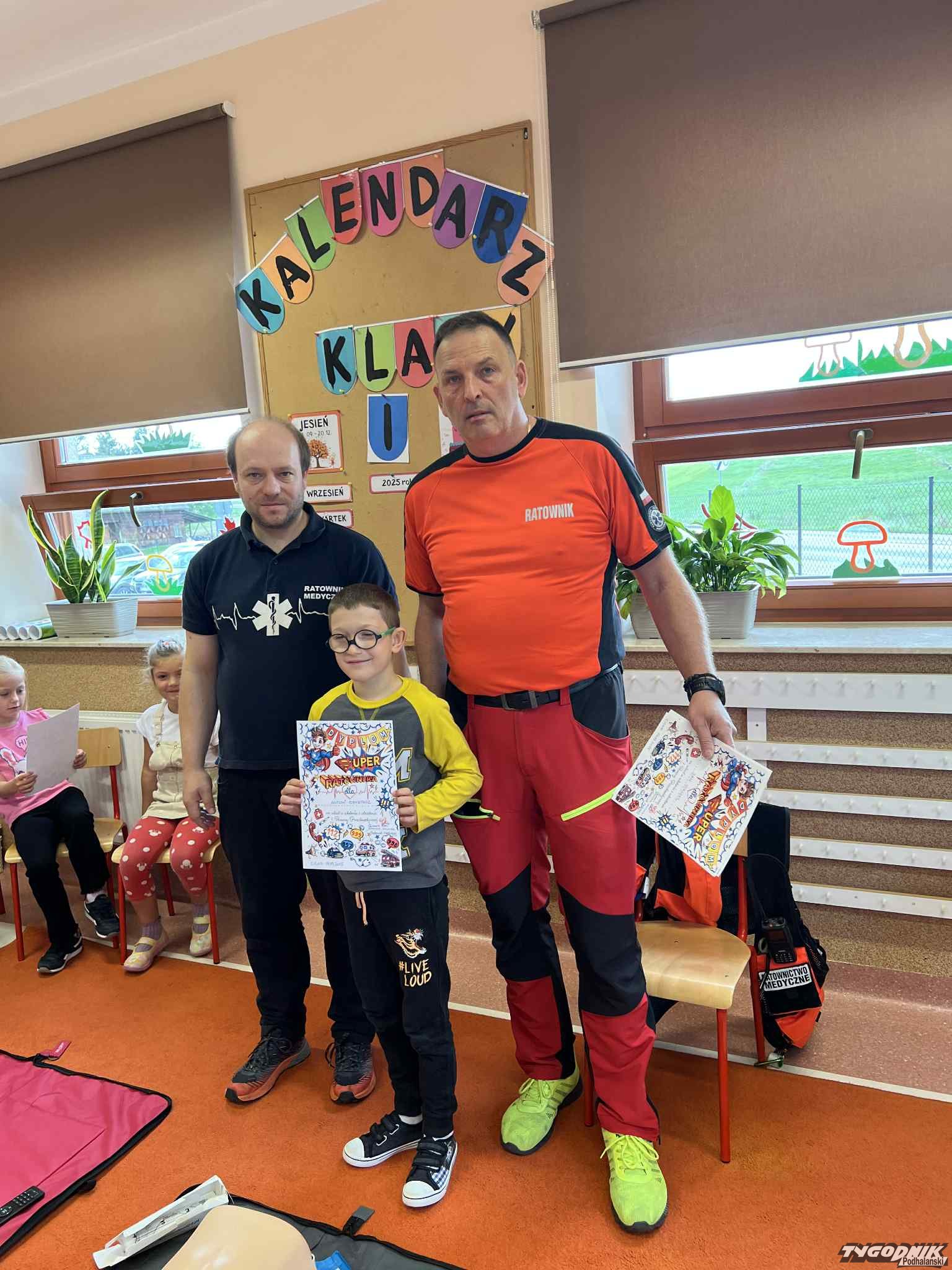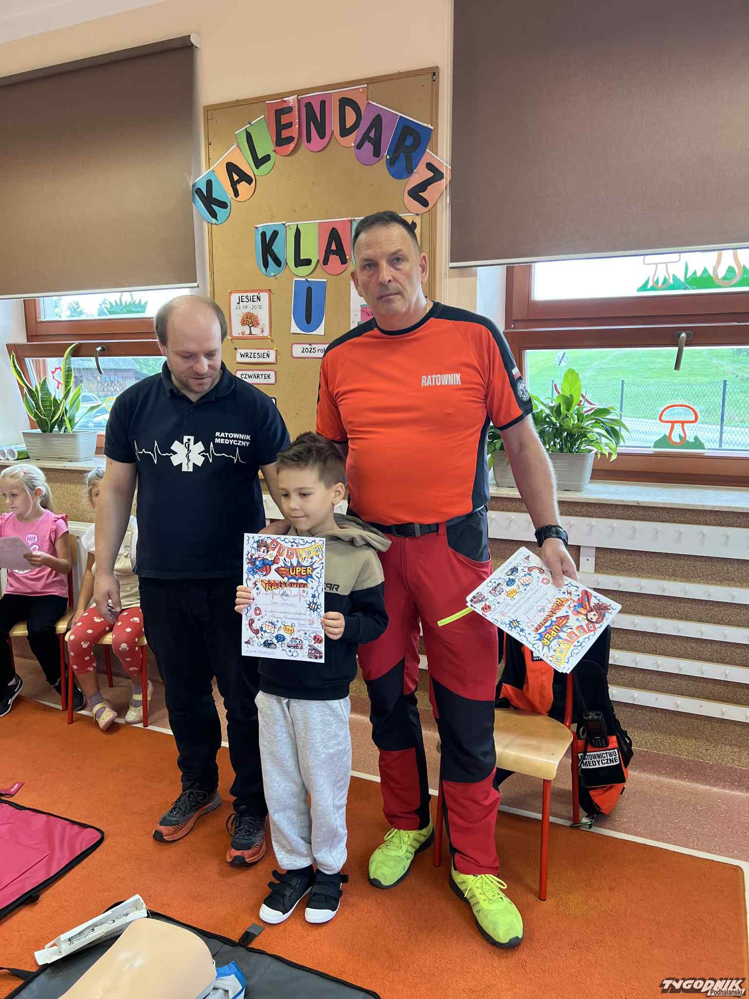 Uczniowie mogli zobaczyć z bliska wyposażenie kamizelki ratownika, niezbędną torbę ratowniczą oraz wnętrze karetki pogotowia. Ratownicy przeprowadzili również praktyczne szkolenie z zakresu pierwszej pomocy. Dzieci przypomniały sobie numery alarmowe, dowiedziały się, jak działa defibrylator, a także mogły spróbować własnych sił w prowadzeniu masażu serca. Na zakończenie każdy uczeń otrzymał pamiątkowy dyplom potwierdzający udział w szkoleniu. Było to niezwykle pouczające i ciekawe spotkanie, które na długo pozostanie w pamięci pierwszoklasistów.
