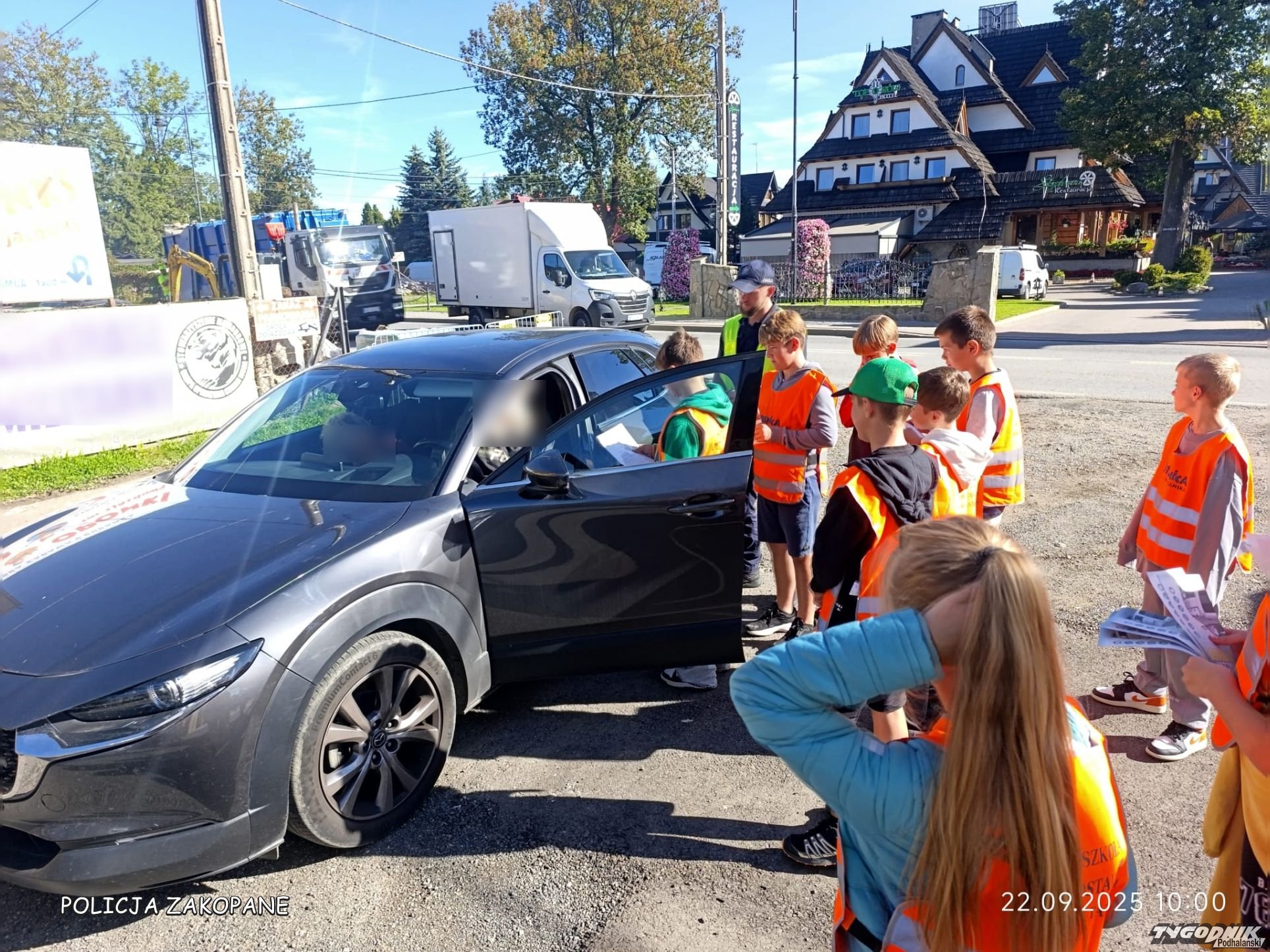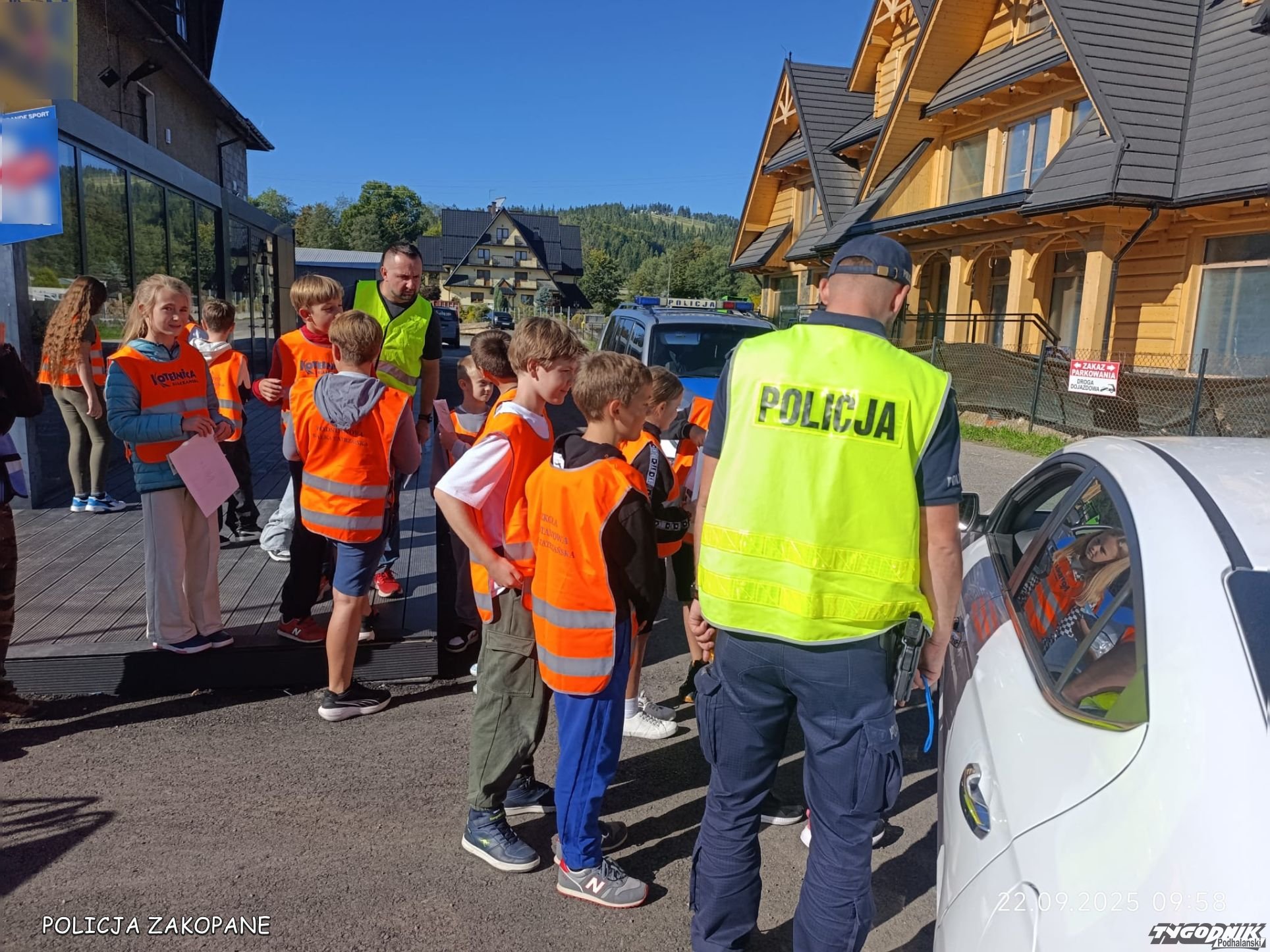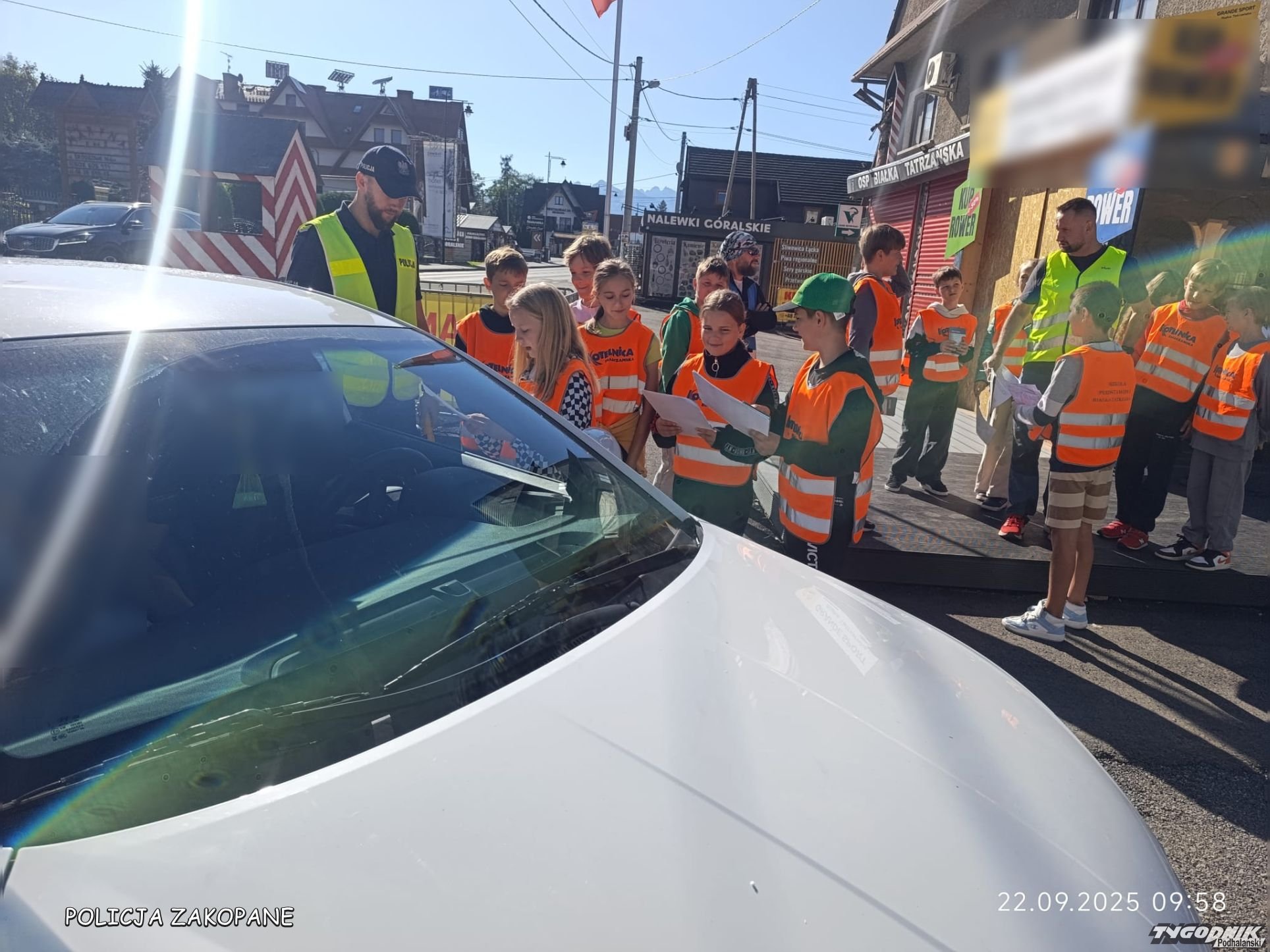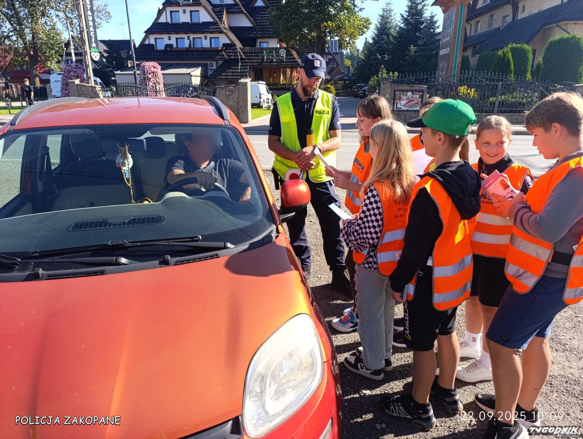 Policjanci z dziećmi przypominali kierowcom o zasadach bezpieczeństwa