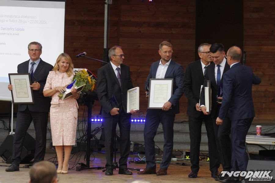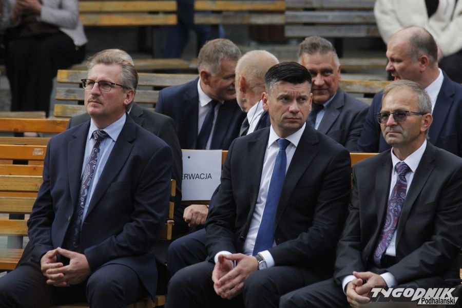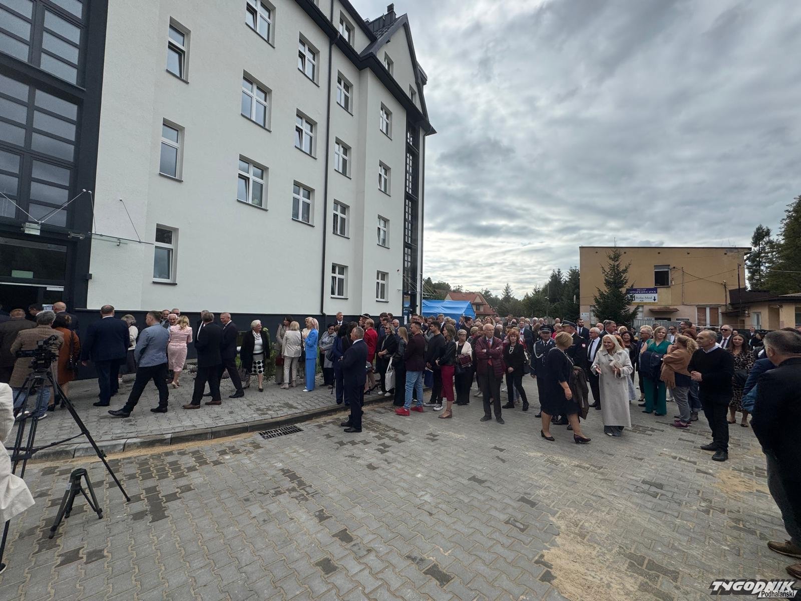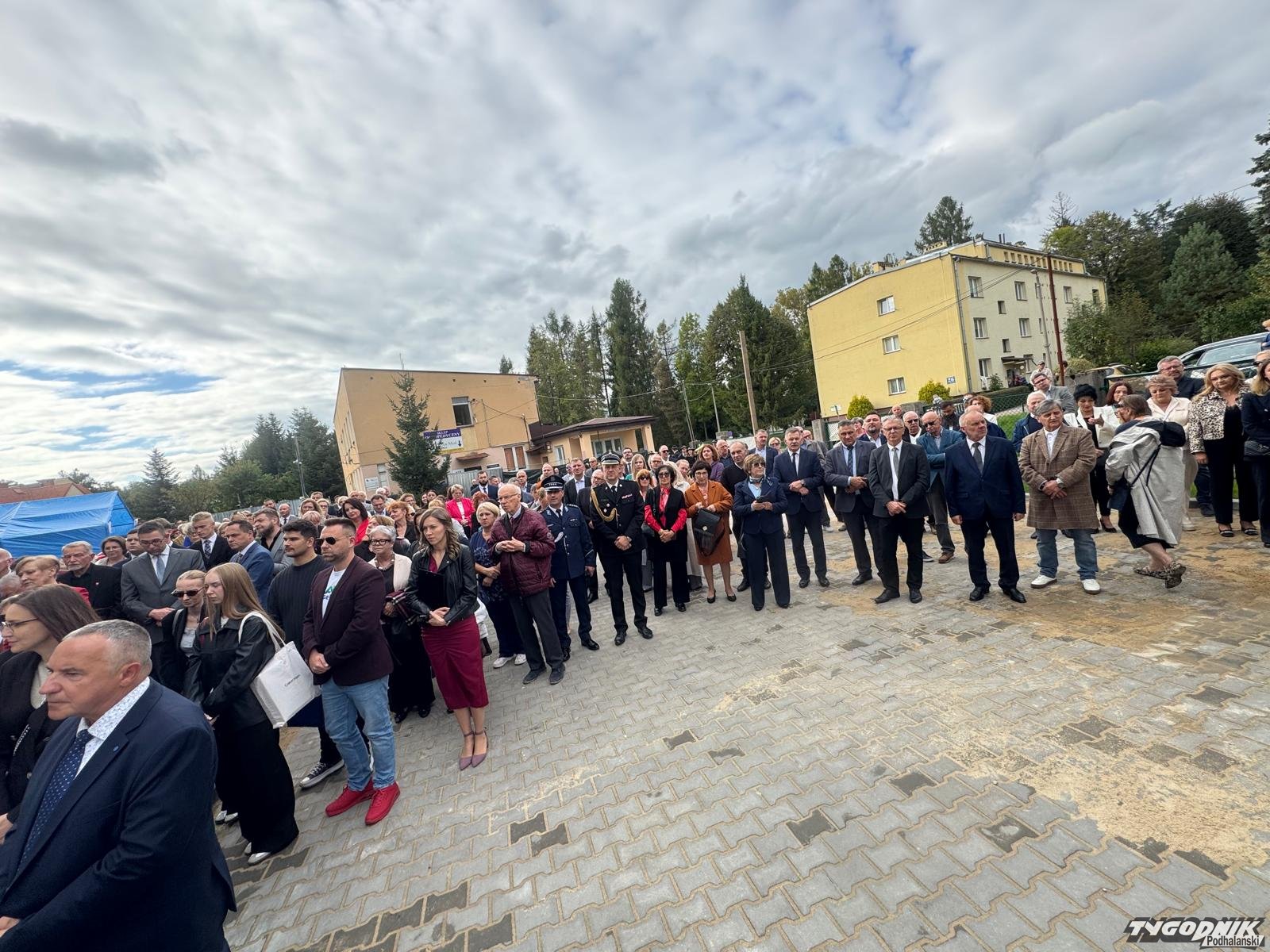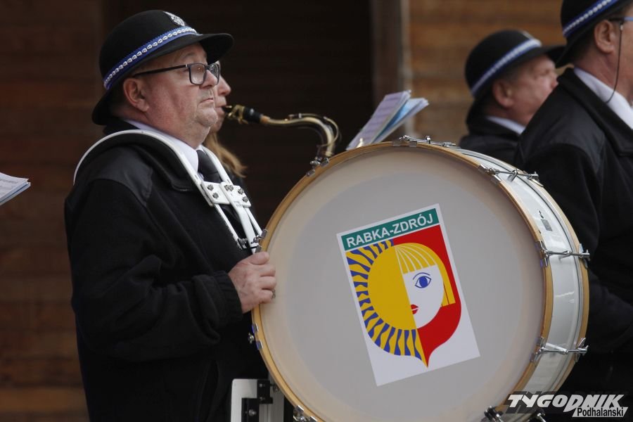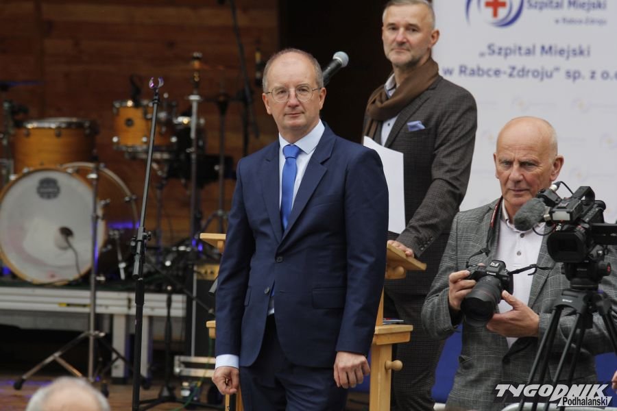 Pierwsza część uroczystości odbyła się na placu przed gmachem odbudowanego szpitala. Tam nastąpiło symboliczne przecięcie wstęgi i poświecenie nowego budynku. Spod szpitala, goście uroczystości przy akompaniamencie Orkiestry Dętej Rabczańskiej OSP przemaszerowali do amfiteatru. Tam nastąpiło uroczyste powitanie gości i przyszedł czas na przemówienia.