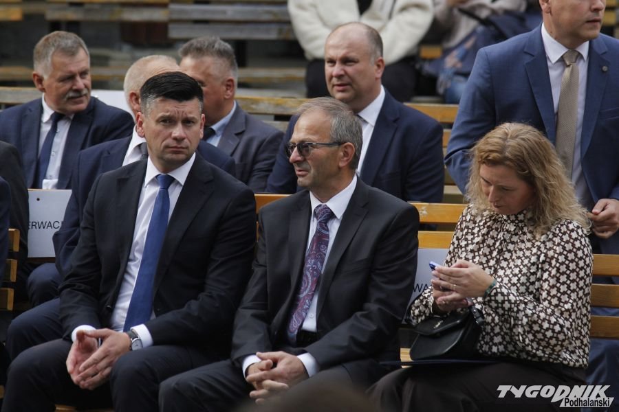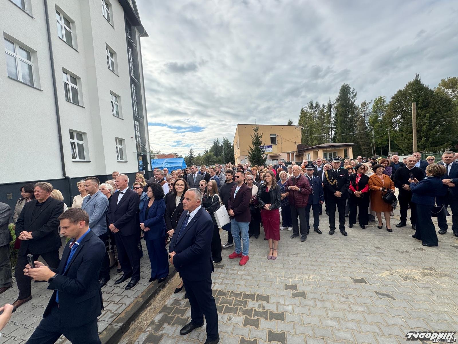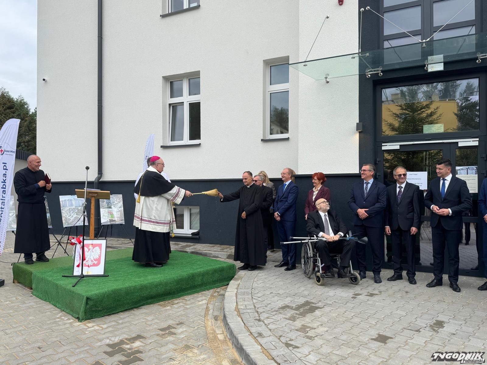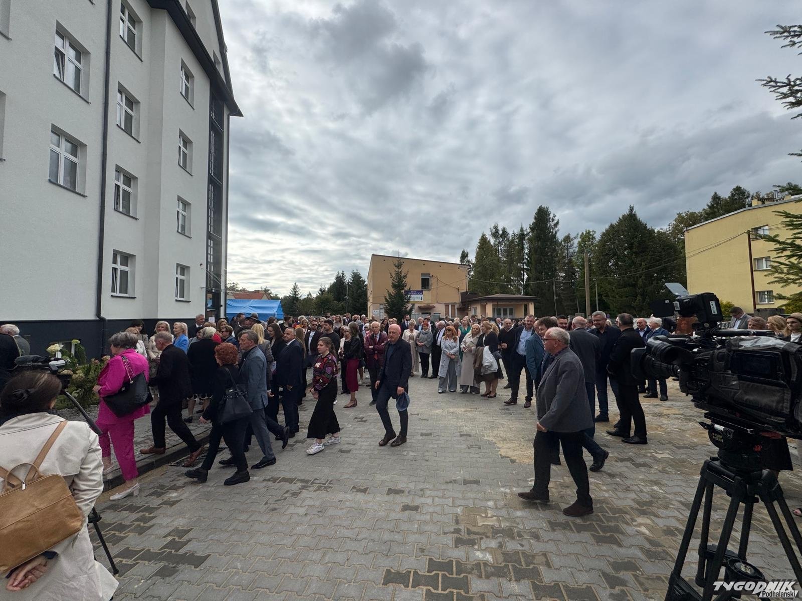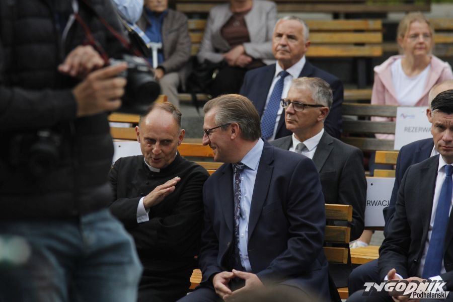 Pierwsza część uroczystości odbyła się na placu przed gmachem odbudowanego szpitala. Tam nastąpiło symboliczne przecięcie wstęgi i poświecenie nowego budynku. Spod szpitala, goście uroczystości przy akompaniamencie Orkiestry Dętej Rabczańskiej OSP przemaszerowali do amfiteatru. Tam nastąpiło uroczyste powitanie gości i przyszedł czas na przemówienia.