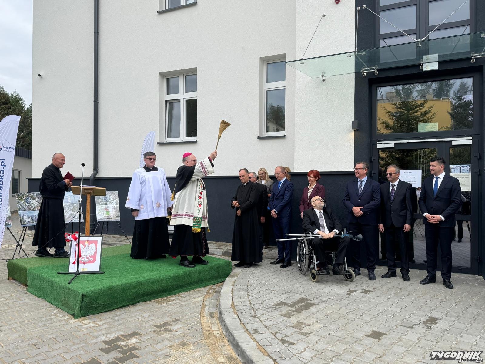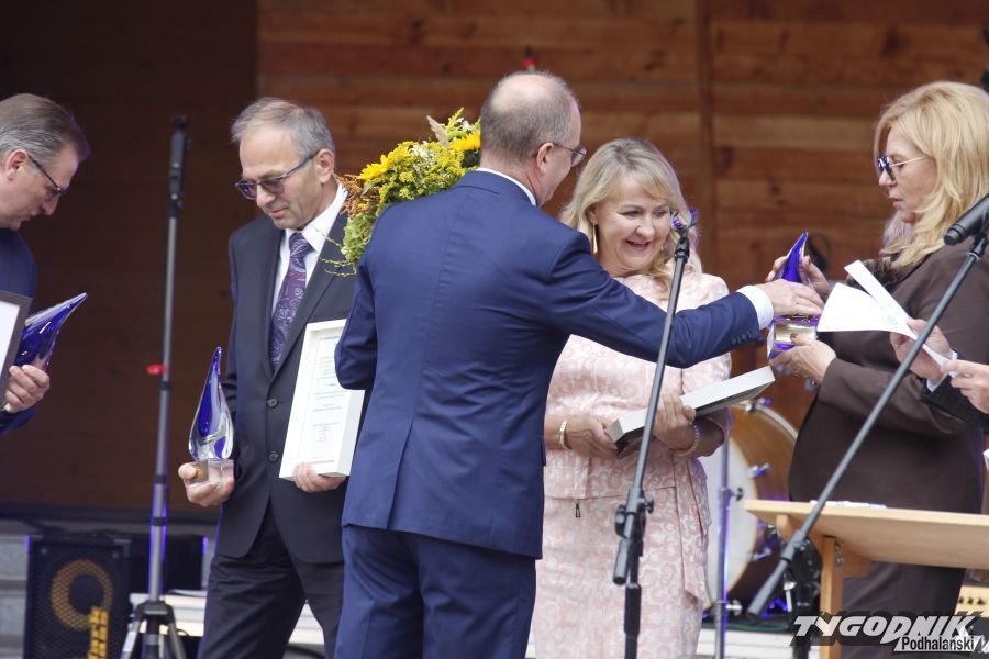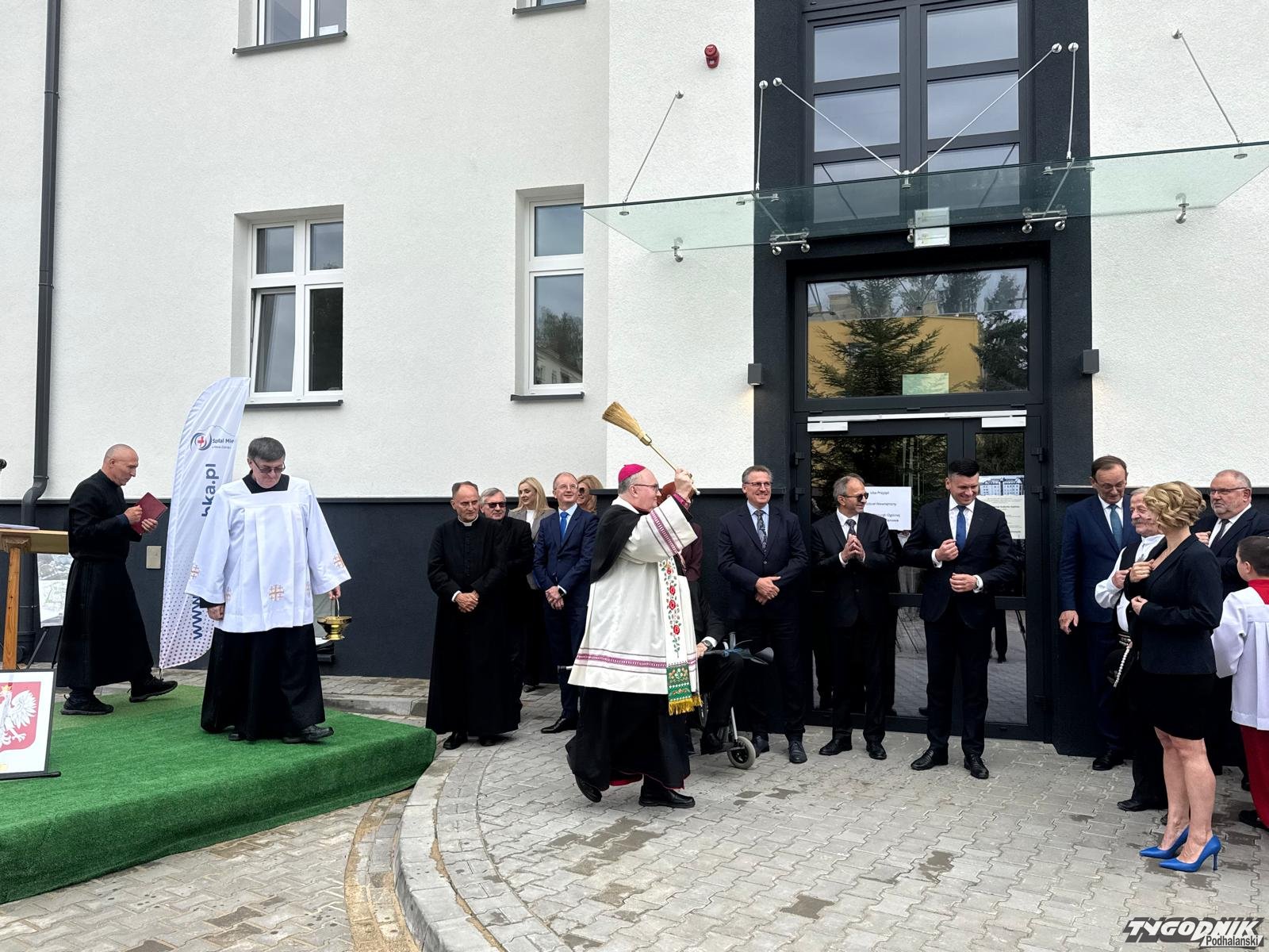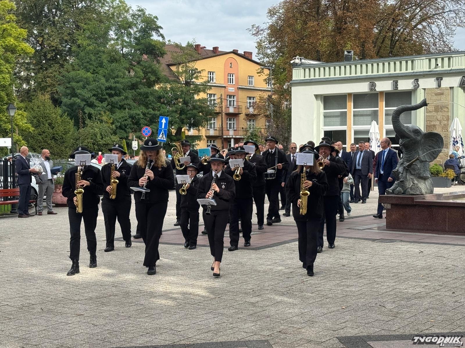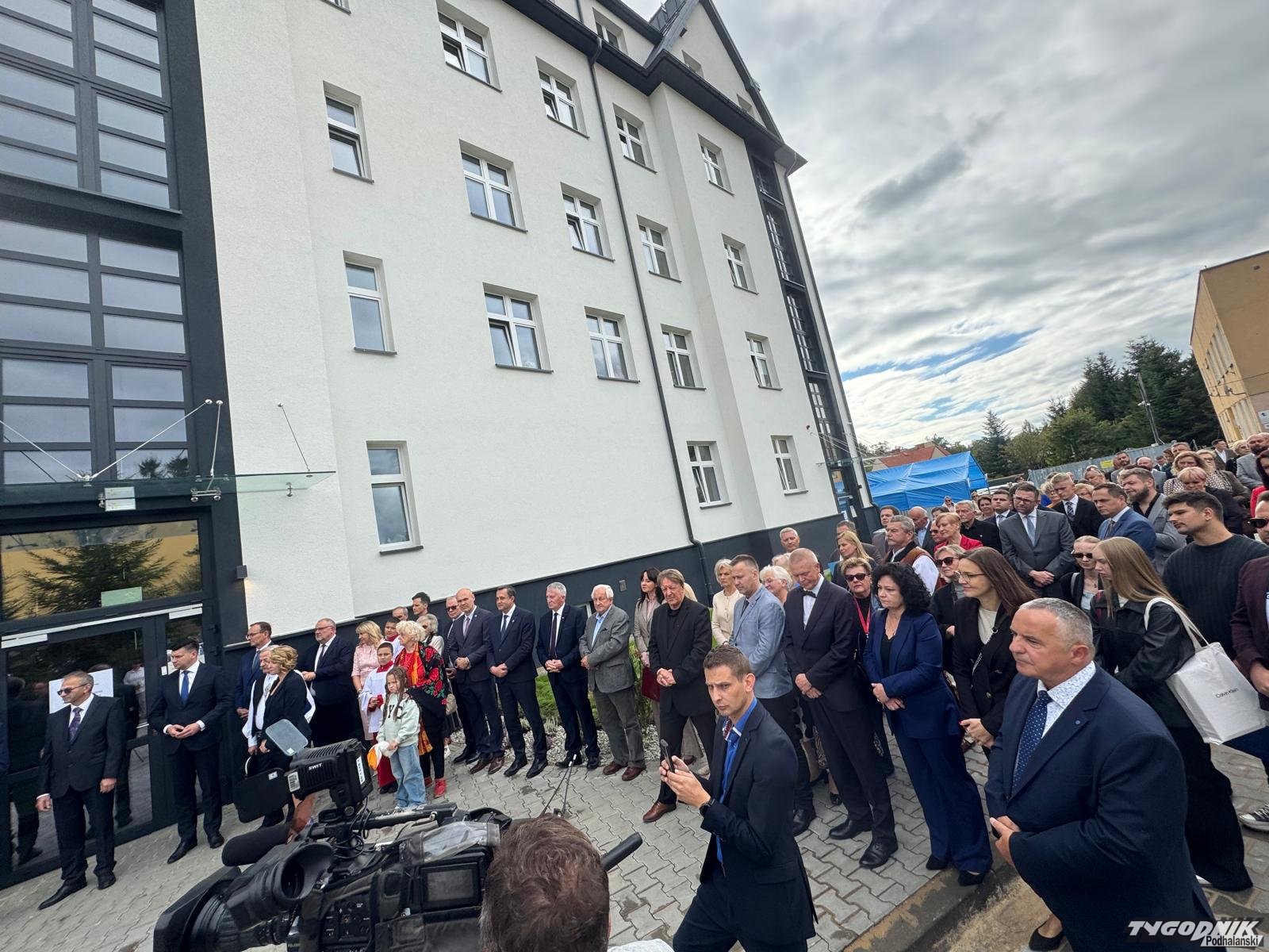 Pierwsza część uroczystości odbyła się na placu przed gmachem odbudowanego szpitala. Tam nastąpiło symboliczne przecięcie wstęgi i poświecenie nowego budynku. Spod szpitala, goście uroczystości przy akompaniamencie Orkiestry Dętej Rabczańskiej OSP przemaszerowali do amfiteatru. Tam nastąpiło uroczyste powitanie gości i przyszedł czas na przemówienia.