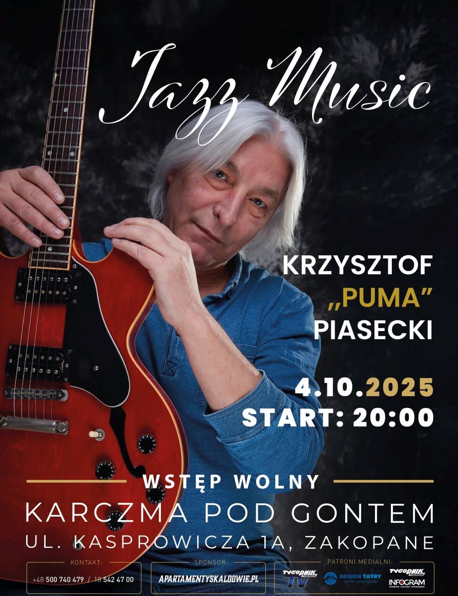 Zakopiańska Karczma Pod Gontem (ul. Kasprowicza 1A) zaprasza w sobotę 4.10 o godzinie 20 na koncert Krzysztofa "Pumy" Piaseckiego.