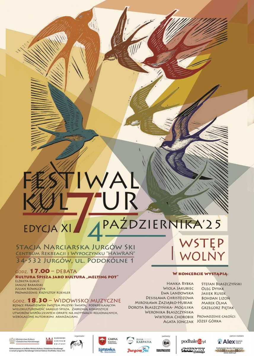 Rozpocznie się o godzinie 17 od debaty, na którą organizatorzy zapraszają do Centrum Rekreacji i Wypoczynku "Hawrań" na terenie stacji narciarskiej Jurgów Ski. Temat, który wyznaczy drogę dyskusji, to: "Kultura Spisza jako kultura "melting pot", a wezmą w niej udział: Elżbieta Łukś, Janusz Barański i Julian Kowalczyk. Moderatorem będzie Krzysztof Koehler.