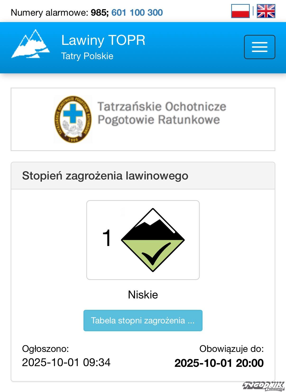 Pierwszy stopień zagrożenia lawinowego w Tatrach (WIDEO)