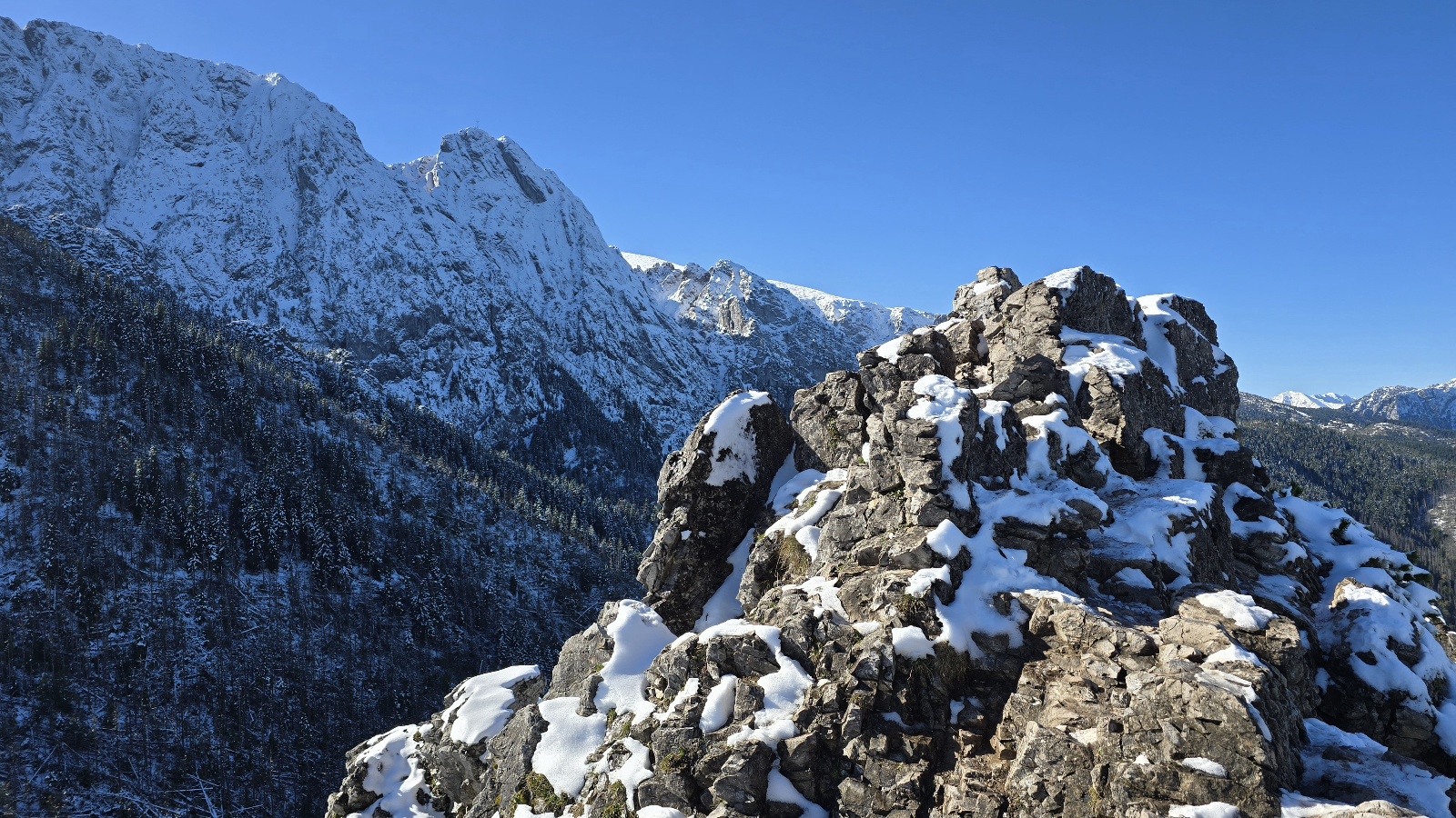 W Tatrach dziś bardzo wielu turystów, ale jeszcze rano o godz. 9 w Dolinie Strążyskiej spotkaliśmy kilka osób, z kolei po godz. 10 na Sarnią Skałę dotarło ok. 10 turystów. Z każdą minutą robiło się jednak coraz bardziej tłoczno. Tatry dziś zachwycają pięknymi widokami. Szlaki na Sarnią Skałę są mokre, ale śnieg, który zalegał w górnej partii już stopniał. Wyżej ponad 20 cm śniegu, a powyżej 1800 metrów pierwszy stopień zagrożenia lawinowego. Niestety, w niedzielę pogorszenie pogody, które potrwa kilka dni.